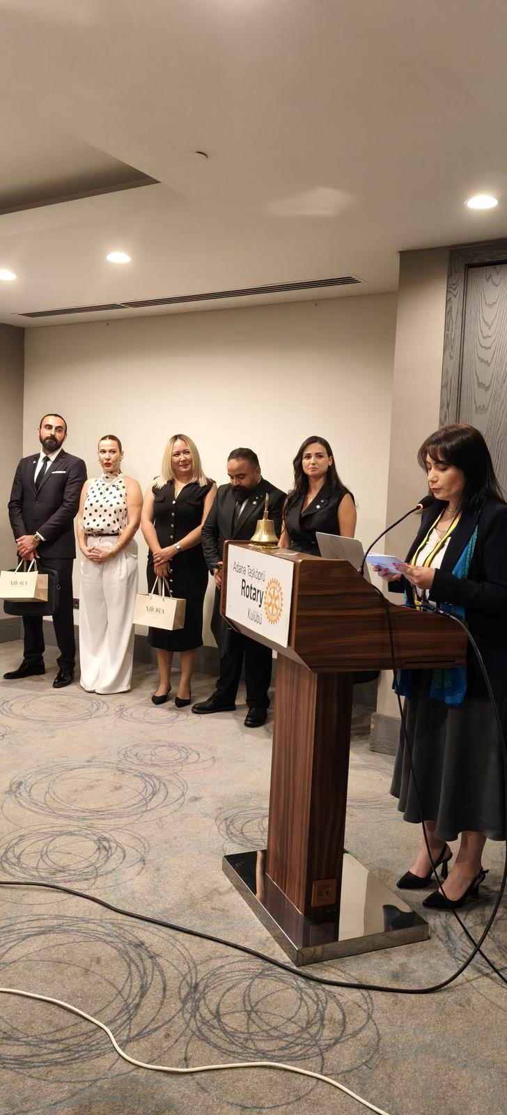 Yeni üyelerimiz Tuğçe Gül Yıldız & Yemliha, Uğur Akpınar & İlkin ve Damla Tümsa, Adana Taşköprü Rotary ailesine katıldılar. Rozetlerini Guvernörümüz L. Can Çığırgan ve Suar takdim etti.