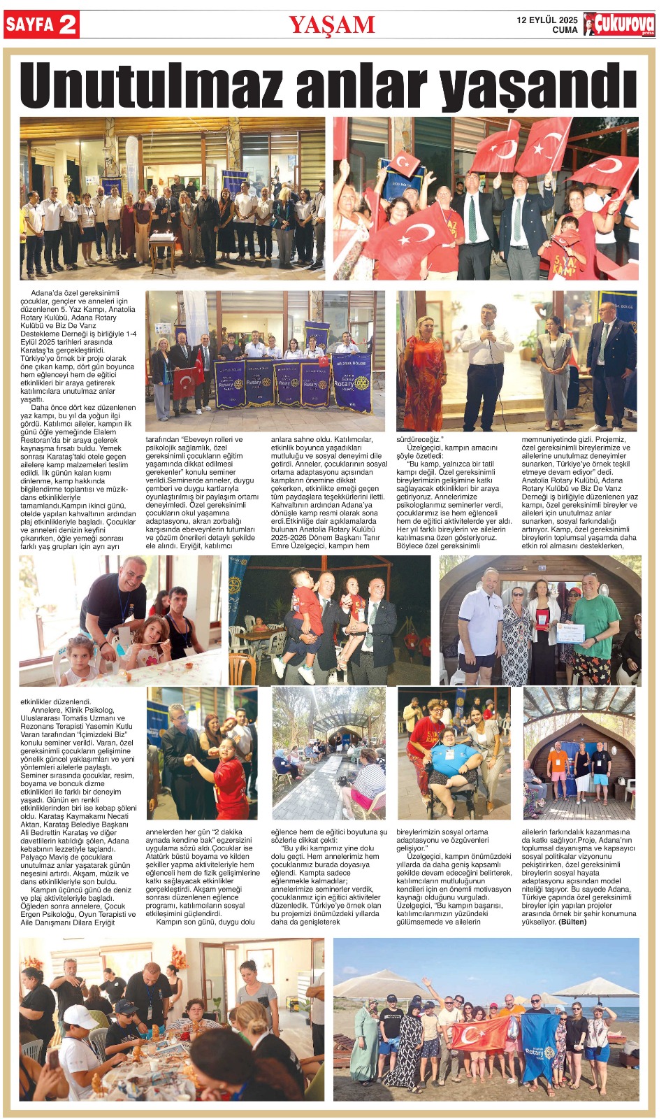 09 Per ADANADA 5. YAZ KAMPI Kulüp Haberleri ANATOLİA ROTARY ADANA ROTARY VE BİZDE VARIZ DESTEKLEME DERNEĞİ TARAFINDAN DÜZENLENEN 5. YAZ KAMPINDA UNUTULMAZ ANLAR YASANDI Haber Dosyaları: Paylaş