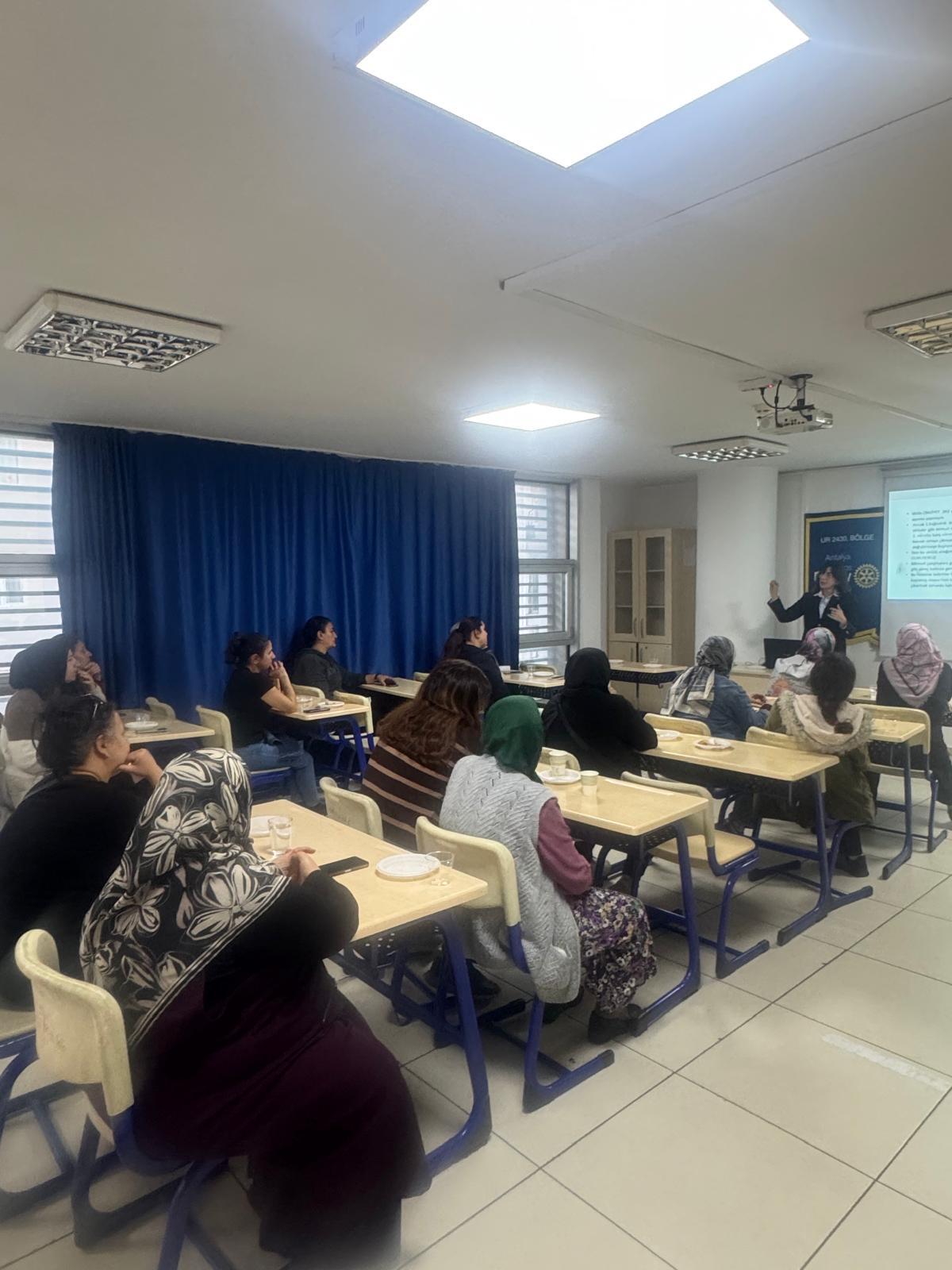 Muratpaşa Belediyesi Zeytinköy Toplum Birliği 'nde Ev Kadınlarına Ufuk Geliştirme Projesi ''EVKA '' kapsamında eğitim serimizin ilk oturumu gerçekleştirildi. Ev Kadınlarından oluşan katılımcı grubuna Av. Ayşegül Bulut, Uzm. Dr. Berrin Karakuy, Dr. Müberra Kılıç tarafından verilen seminerde Dönem Guvernörü Can Çığırgan 'da katılım sağlamıştır. Projeye katkı sunan tüm paydaşlarımıza teşekkür ederiz. Haber Dosyaları: