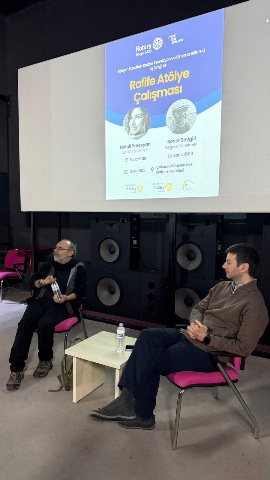 25.02.2026 tarihinde Çukurova Üniversitesi İletisim Fakültesi Radyo Televizyon ve Sinema Bölümü öğrencilerine yönelik sanat yönetmeni Natalie Yeresyan ve Belgesel Yönetmeni Soner Sevgili'nin Katılımlarıyla ataölye çalışması gerçekleştirdik. Destekleri ve işbirlikleri için Radyo Sİnema Televizyon Bölüm Başkanı Prof. Dr. Muzaffer Sümbül'e teşekkür ederiz.