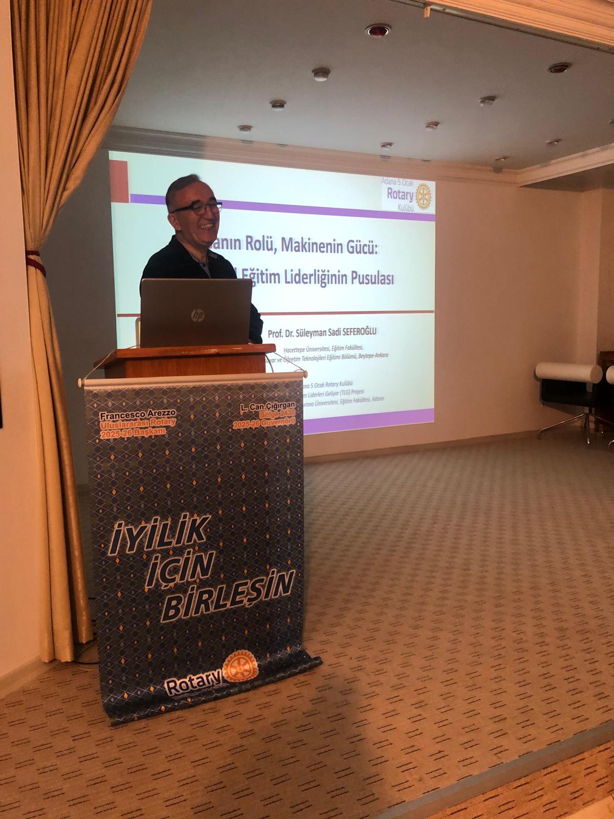 21 Kasım tarihinde TLG’nin ilk konuşmacısı Prof. Dr. Süleyman Sadi Seferoğlu, “İnsanın Rolü, Makinenin Gücü: Yeni Nesil Eğitim Liderliğinin Pusulası” konulu etkileyici bir sunum gerçekleştirdi.