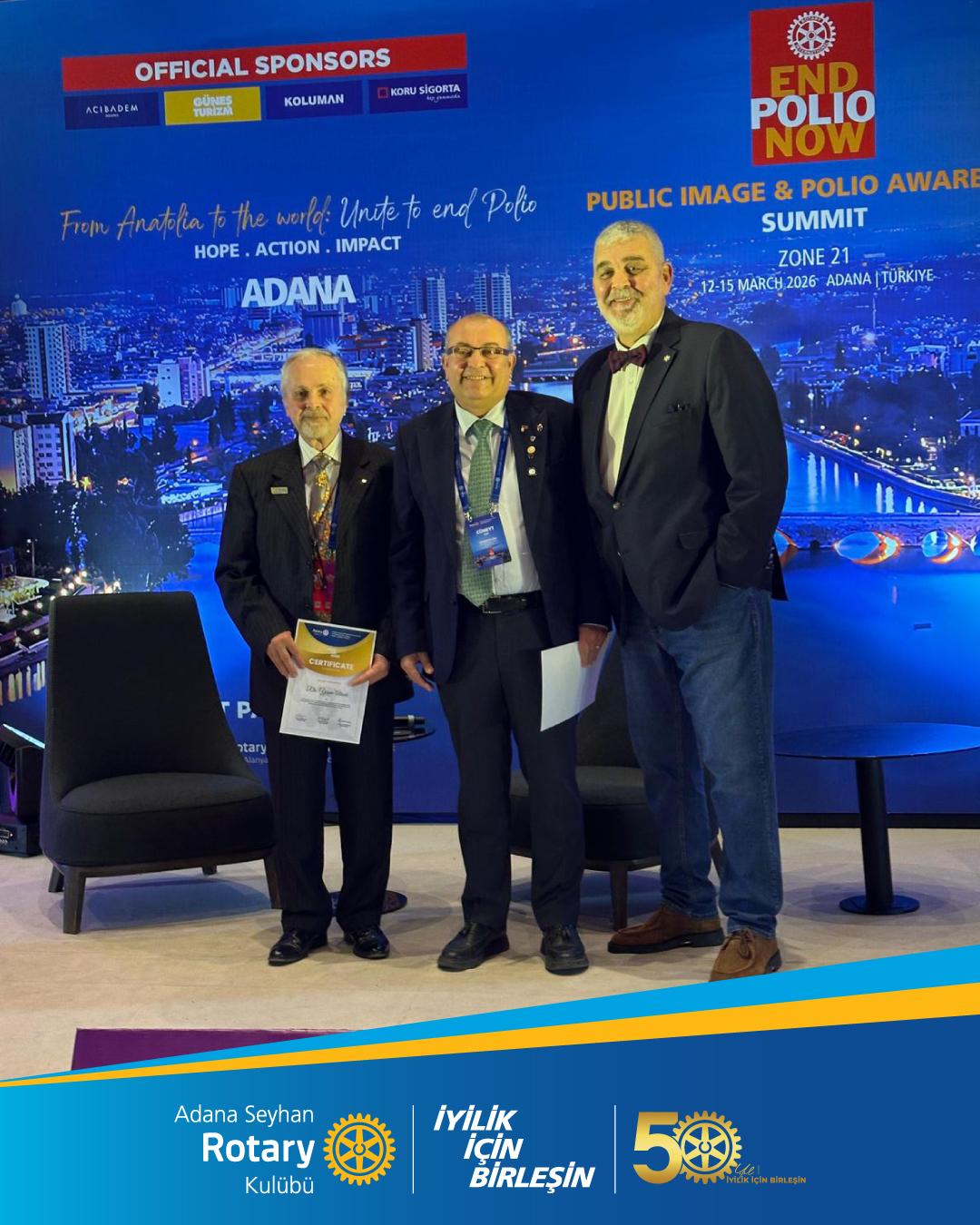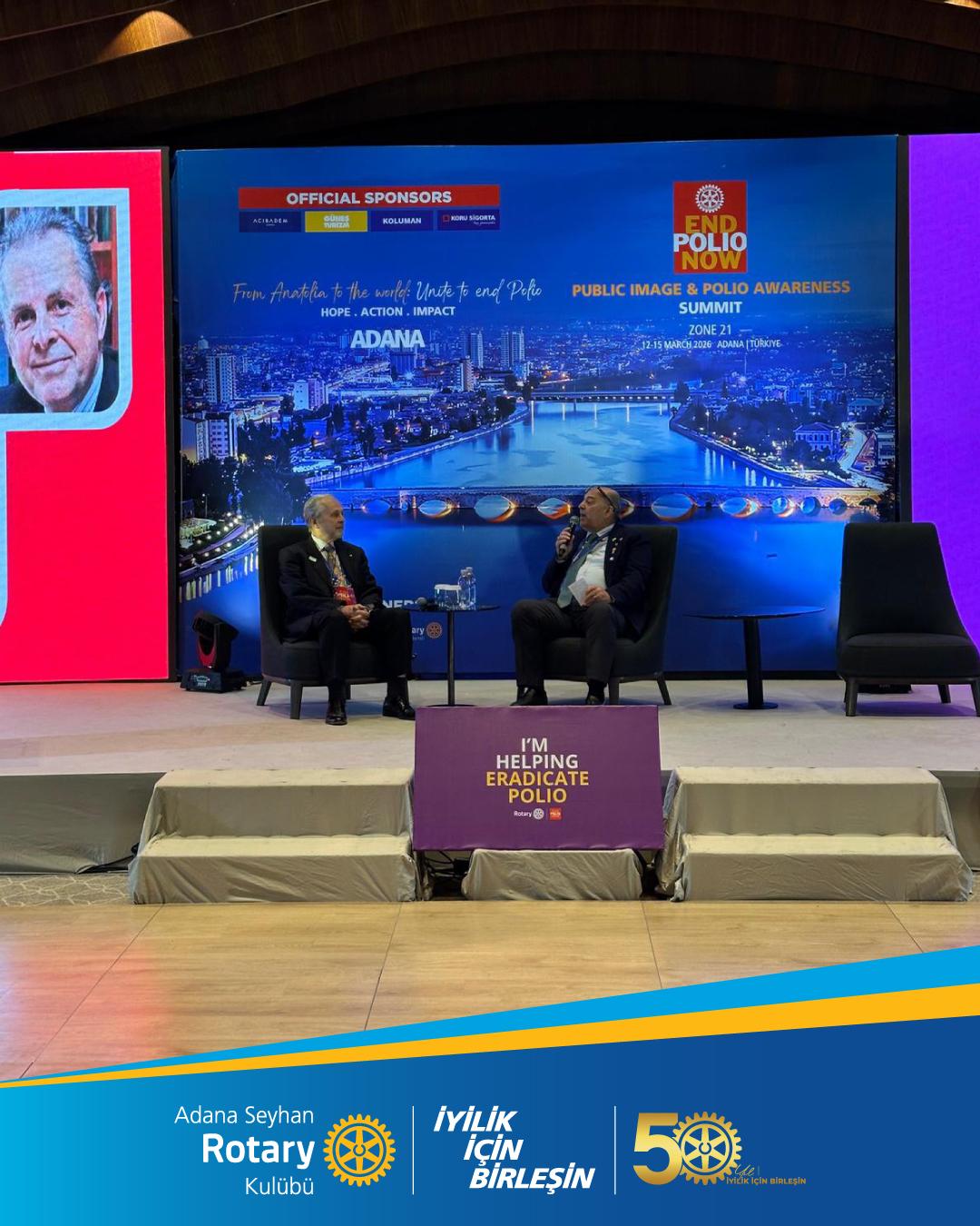 Adana Rotary Kulübü’nün ev sahipliğinde Adana’da düzenlenen Polio Günü etkinliğine (Public Image & Polio Awareness Summit Adana, Türkiye 2026), Dönem Başkanımız Ömer Gökçe ve HPV Komite Başkanımız Cüneyt Evrüke katılım sağlamıştır.
