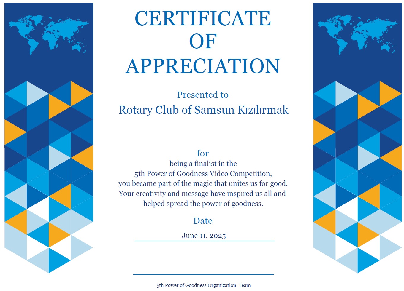 Dünyanın farklı ülkelerinden katılımcılarla ve Uluslararası Rotary’nin üst düzey liderleri ve misafirlerle gerçekleşen ödül töreninde Samsun Kızılırmak Rotary Kulübünün “Magic of Bocce” isimli proje videosu 100’e yakın video arasından ilk 10 finalist arasına kalarak büyük bir başarıya imza attı.