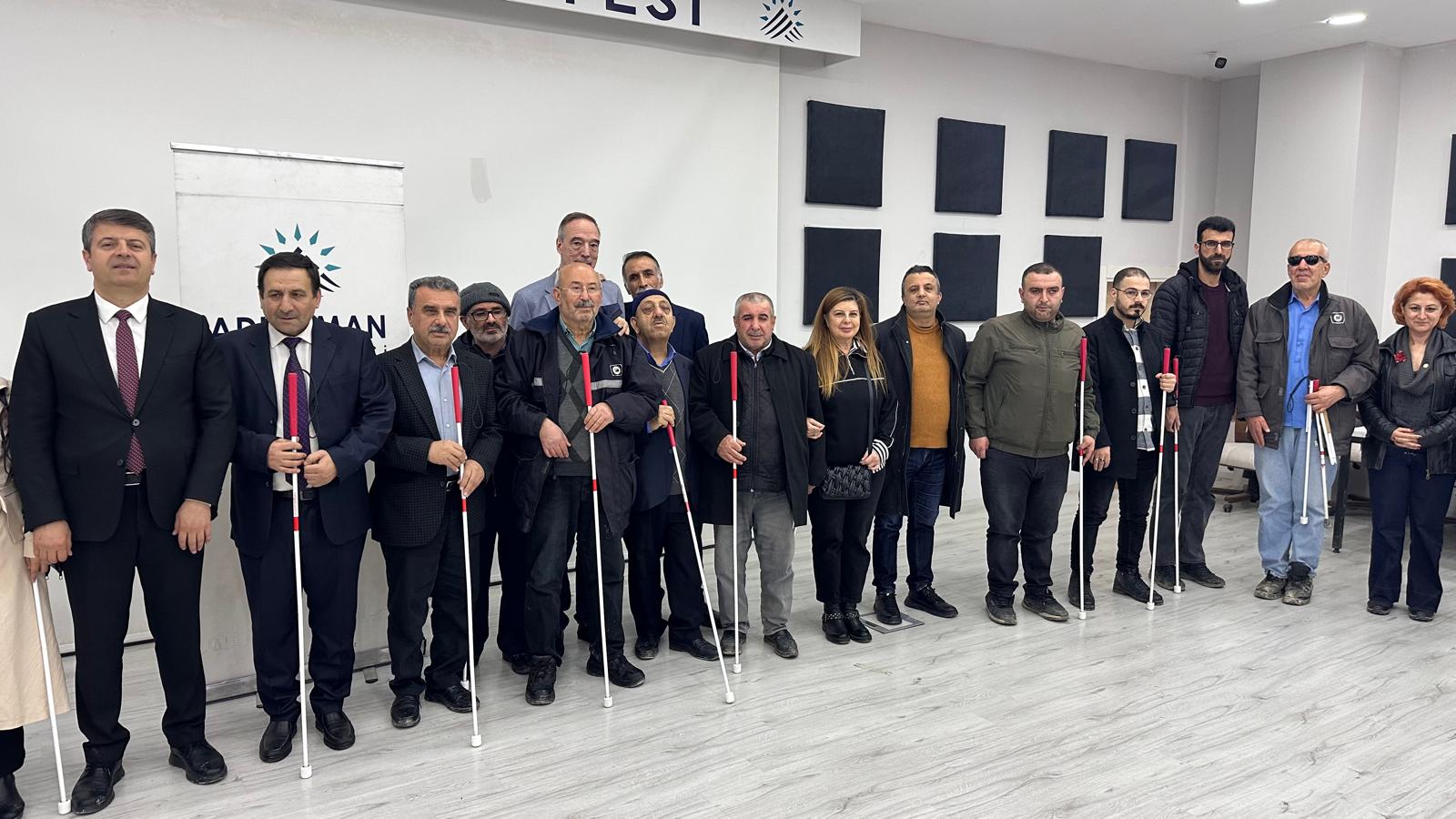 Adıyaman Belediyesi, Suadiye Rotary Kulübü, Kozyatağı Rotary Kulübü ile Rotarak Kulüpleri ve Nemrut Rotary Kulübü iş birliğiyle; Anadolu GAP Görmeyenler Derneği ve Adıyaman Görme Engelliler Kültür Dayanışma ve Birleşme Derneği (Gör-Bir) ortaklığında hayata geçirilen proje kapsamında, görme engelli bireylere beyaz bastonları teslim edildi.