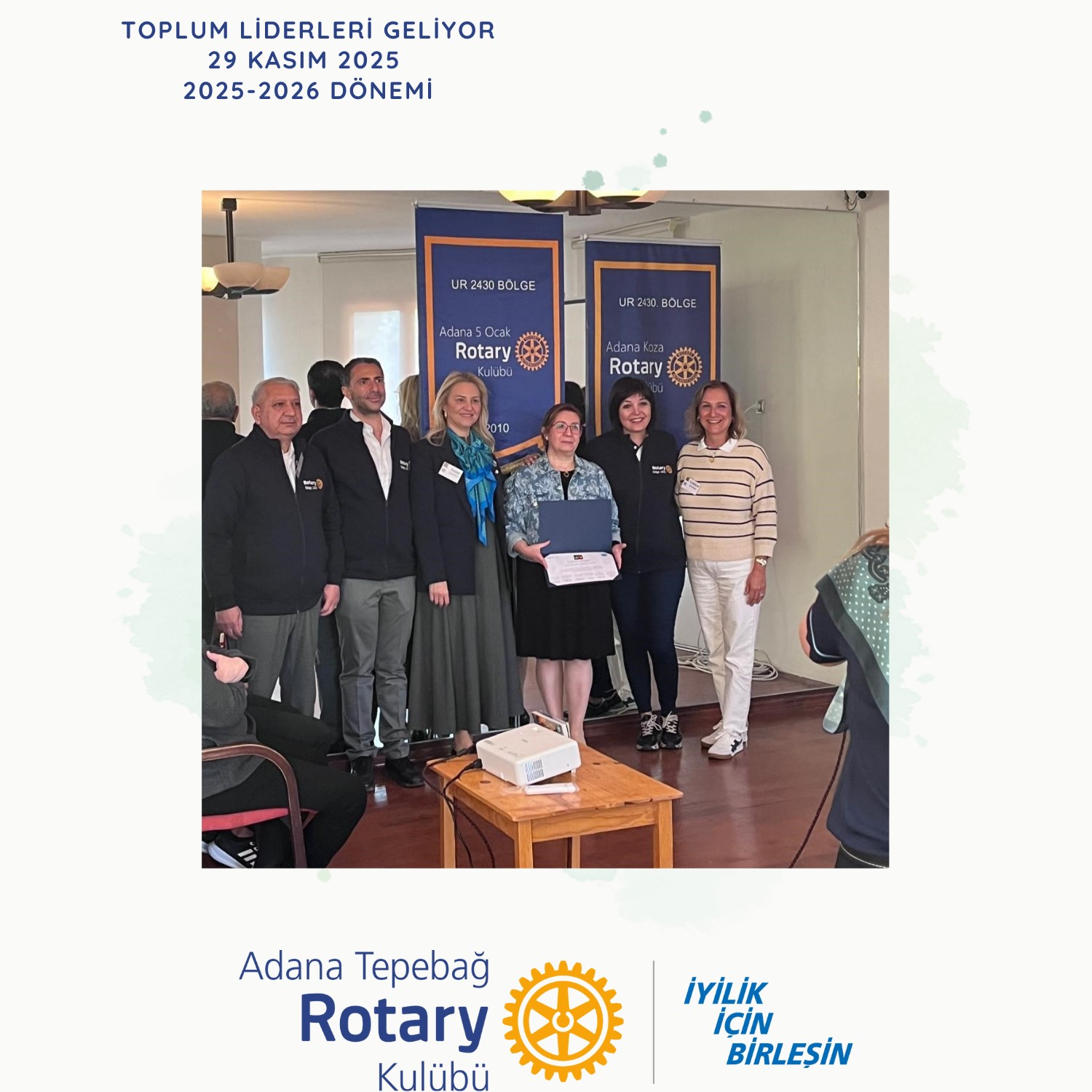 Adana Çukurova Rotary Kulübü, Adana Tepebağ Rotary Kulübü, Adana Güney Rotary Kulübü, Adana 5 Ocak Rotary Kulübü, Adana Koza Rotary Kulübü ve Adana Anatolia Rotary Kulüplerinin birlikte Toplum Liderleri Geliyor (TLG) projesi gerçekleştirmeye 2. hafta devam ettik.