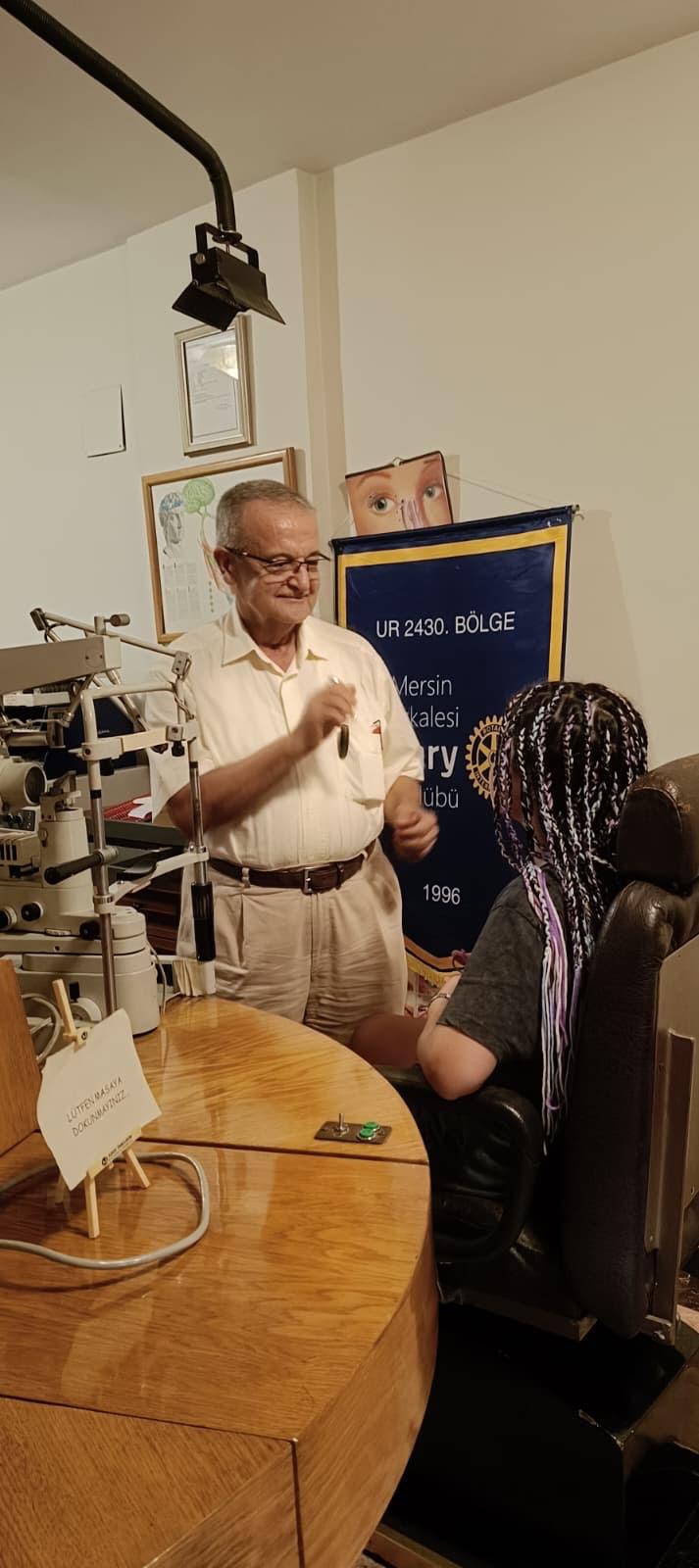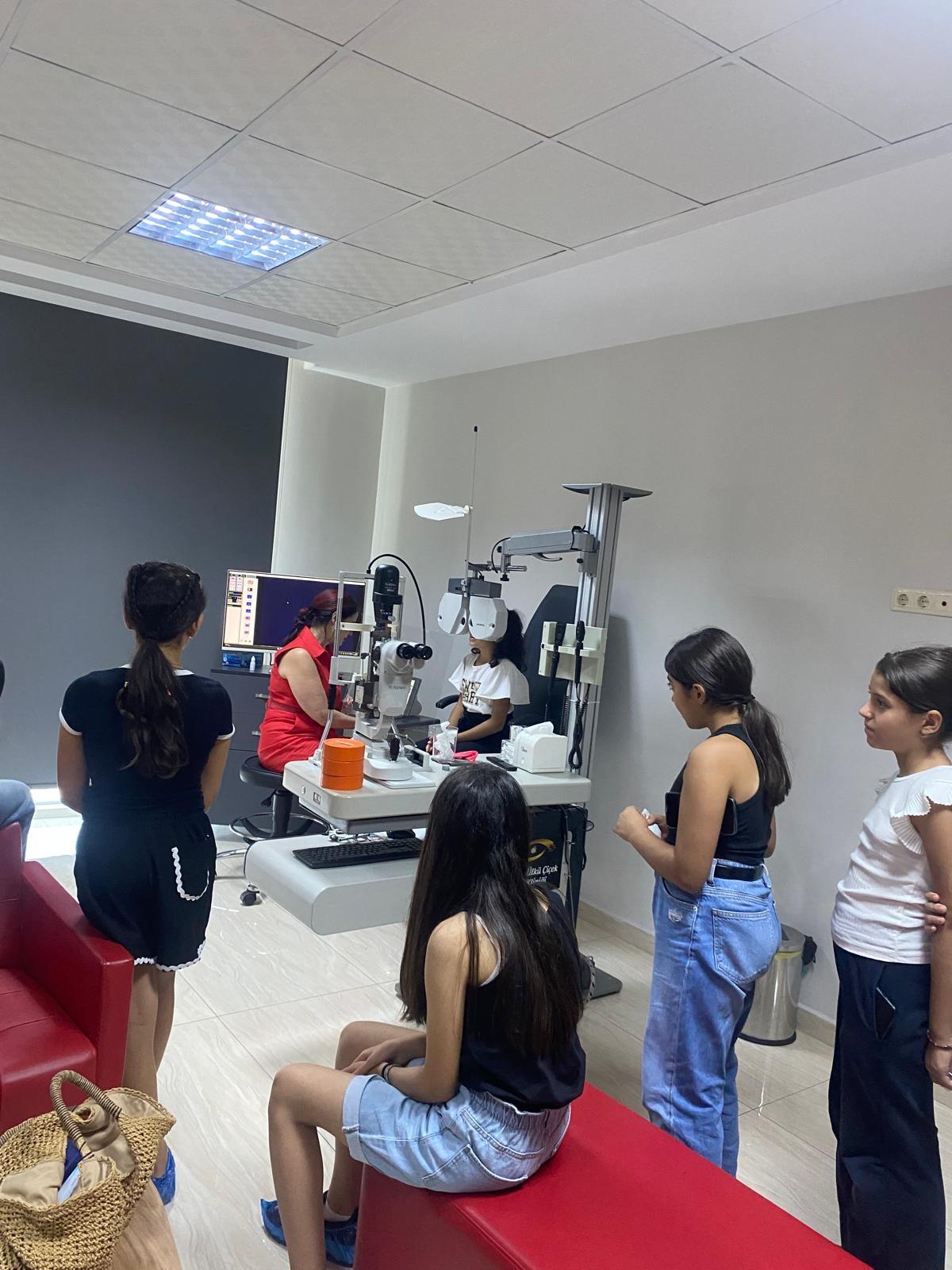 Deprem Bölgesi Hatay ili Defne İlçesi Yeşilpınar Ortaokulu öğrencilerinden 20 öğrencimizin göz sağlığı kontrolleri ve bilinçlendirme eğitimleri Opr Dr. Ülkü Çiçek, Prof Dr. Ayça Sarı, ve Dr Mehmet Dağlı tarafından Mersin'de yapıldı. Bu kontroller kapsamında 2 diyabetli çocuğumuzun detaylı kontrolleri ve detaylı göz filmleri çekildi. Öğrencilerden göz kusurları tespit edilen çocuklara uygun numaralı ve çocukların beğendiği gözlükler hediye edildi.