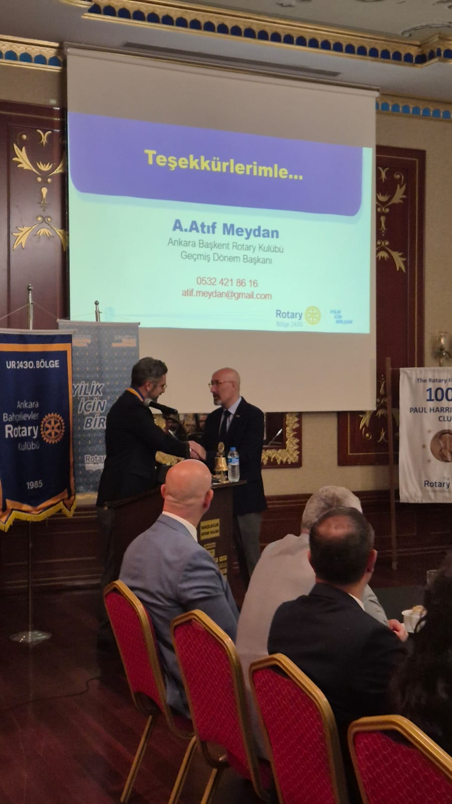 11.09.2025 tarihinde gerçekleştiridğimiz dönemimizin 9. toplantısında, kurulma görevi Guvernörümüz tarafından kulübümüze verilen Ankara Kent Rotary Külübü (aday) ile yaptığımız ortak toplantıya, ANkara Başkent Rotary Kulübü GBD. Atıf Meydan konuşmacı olarak konuk olmuştur. Rotary Bize Ne Kazandırır? Başlıklı sunumunu yapmıştır.