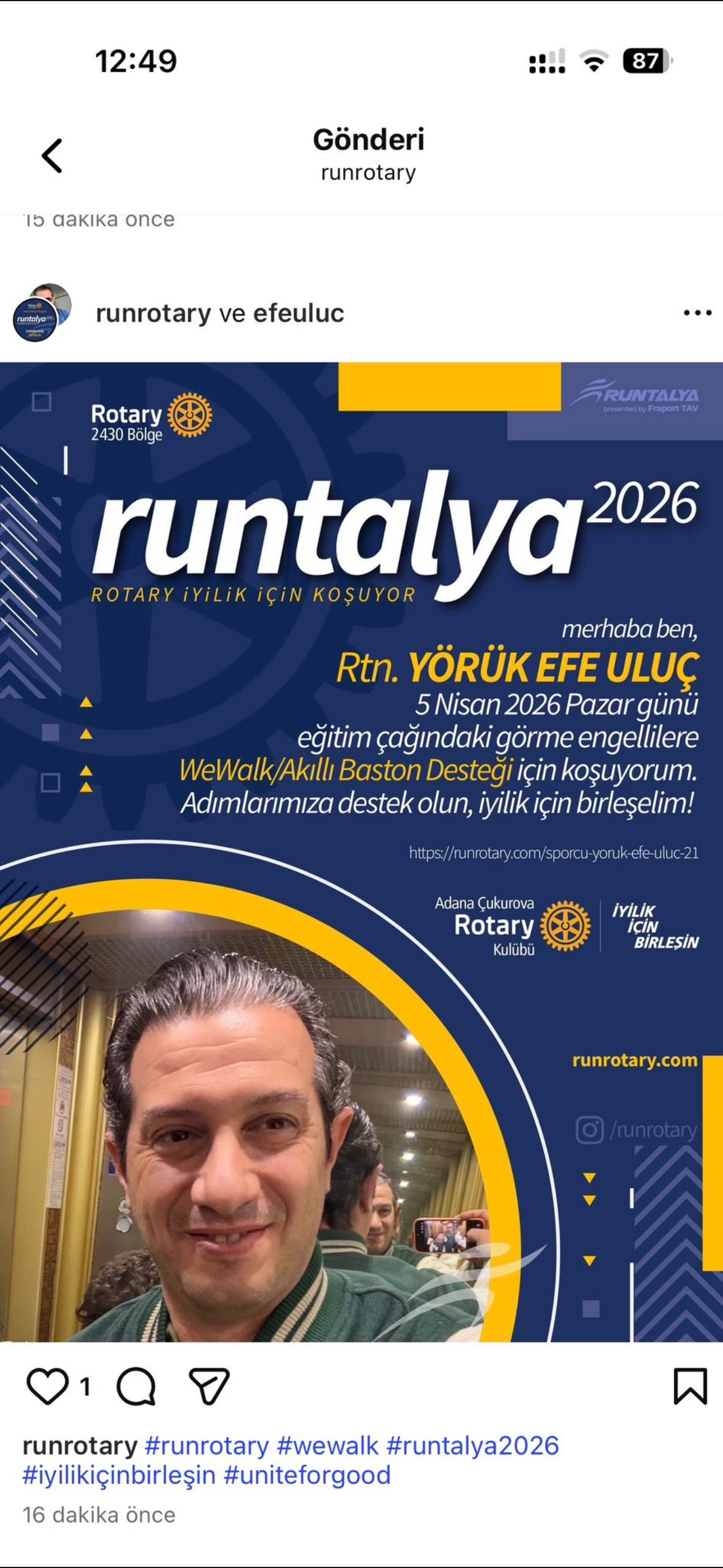 Kulüp üyemiz Yörük Efe ULUÇ RUNTALYA koşusunda 50.000 TL üzeri bağış toplamıştır