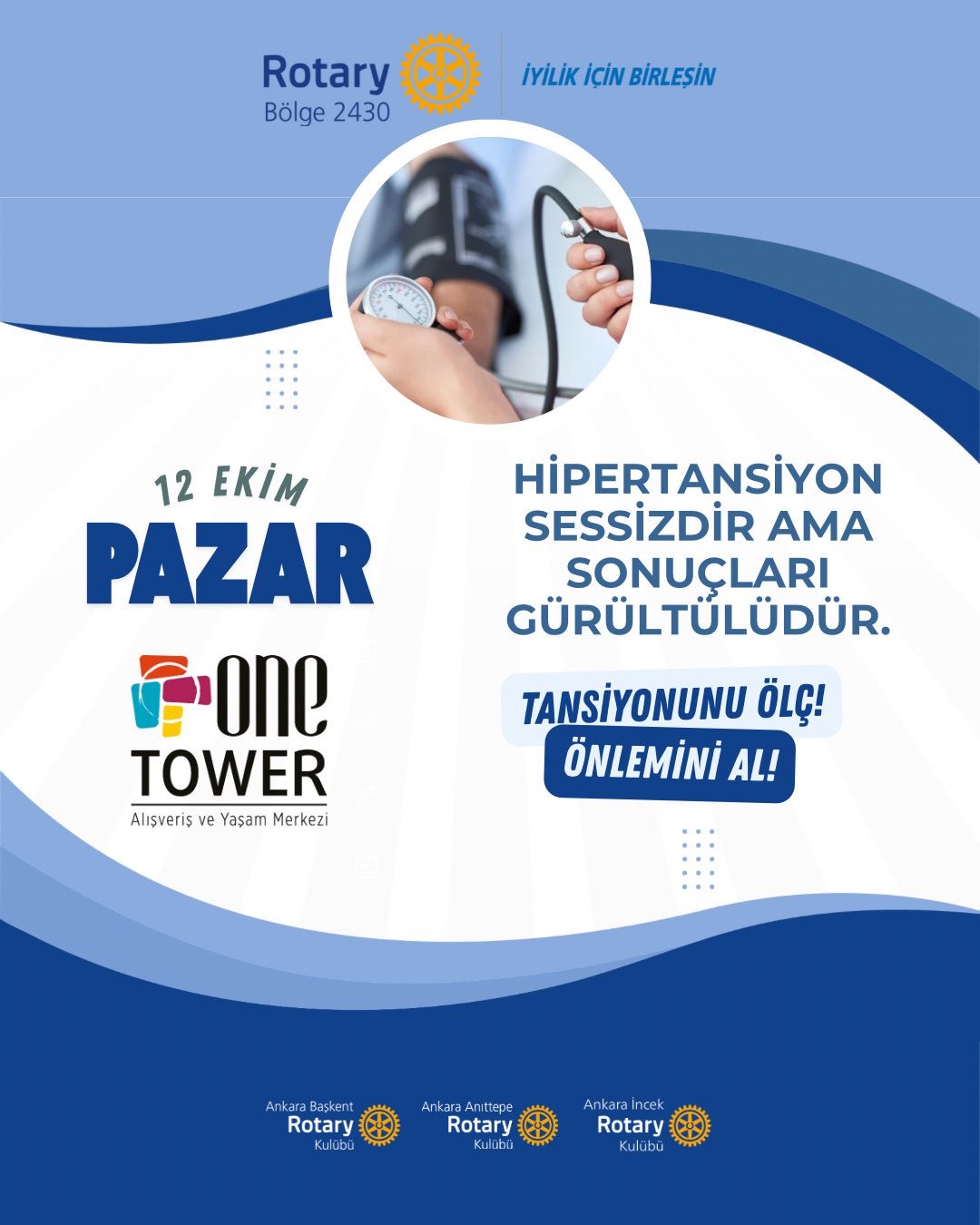 Ankara One Tower AVM’de, hipertansiyon konusunda farkındalık oluşturmak amacıyla bir günlük etkinlik düzenlendi. Etkinlik kapsamında ziyaretçilere bilgilendirici broşürler dağıtıldı ve sağlık personelleri eşliğinde tansiyon ölçümleri yapıldı. Katılımcılara, hipertansiyonun erken tanısı ve düzenli kontrolün önemi hakkında bilgi verildi.
