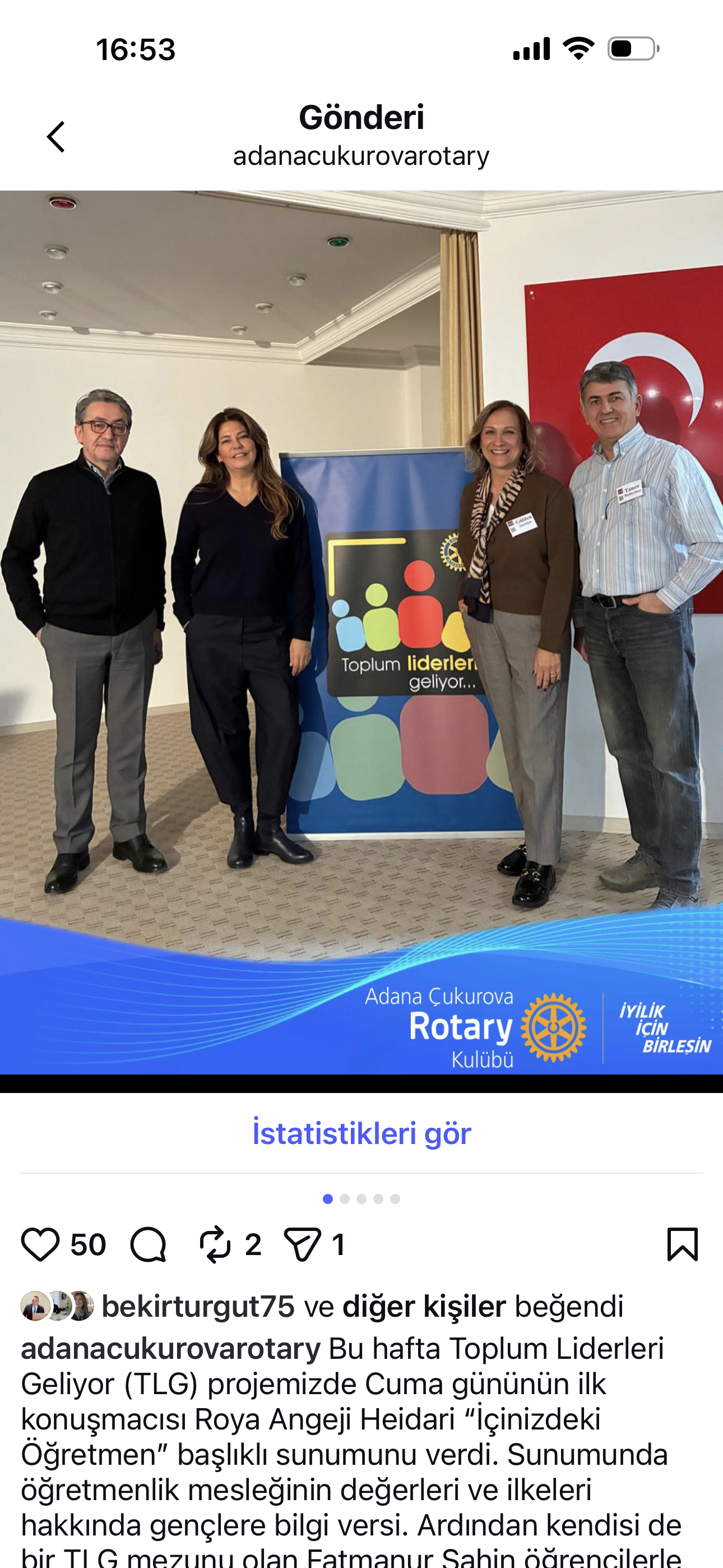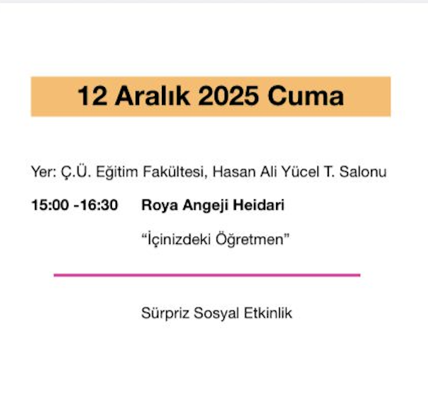 TLG kapsamında Çukurova Üniversitesi Eğitim Fak. öğrencilerine Roya Angeji Heidari tarafından "İçinizdeki Öğretmen" başlıklı sunumda öğrencilere mesleğin ahlaki değerleri ve ilkeleri hakkında sunum yapıldı