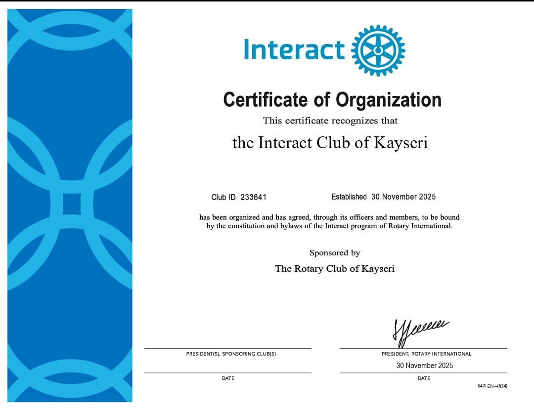 Kayseri Rotary Kulübü olarak Şehrimizde İnteract Kulübü Kurduk