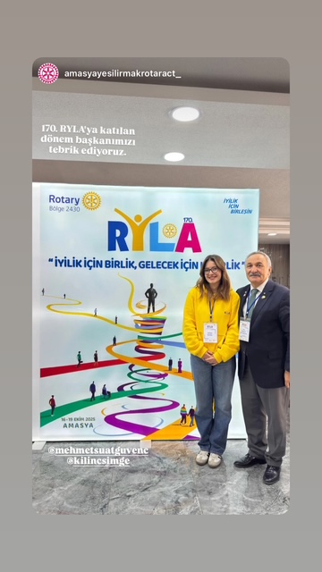 170. RYLA programına Amasya Yeşilırmak Rotary Kulübü olarak Simge KILIÇ ve Muhammed Tarık ÇELİK isimli öğrencilerimizin sponsorluğunu üstlendik.