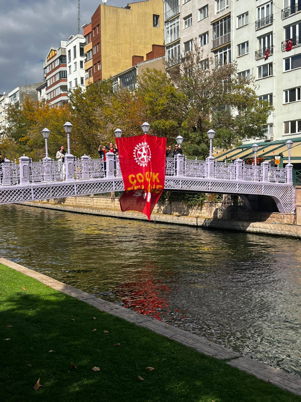 24 EKİM POLİO GÜNÜ BÖLGE GÖREVİ 11 Ekim'de 2.El Pazarimizdaki polio stanti ile başlatmis oldugumuz bölge görevimizi, bilgilendirme broşürleri dagitarak, bilboard, Clp ve Led ekran görsellerimizle devam ettirdik. Bugün de 12.00 itibariyle Eskisehir'in simgesi olan Adalar Köprüsü'ne astigimiz büyük Polio Bayragi önünde basin açiklamasi yaparak görevimizi sonlandirmis bulunuyoruz. Bu özel görevi kulübümüze layık gören guvernörümüze, prizma ekibine ve bizleri yalniz birakmayan tüm dostlarimiza da teşekkür ediyoruz. Ve son olarak; lyilik Için Birleselim, POLIO'ya son verelim