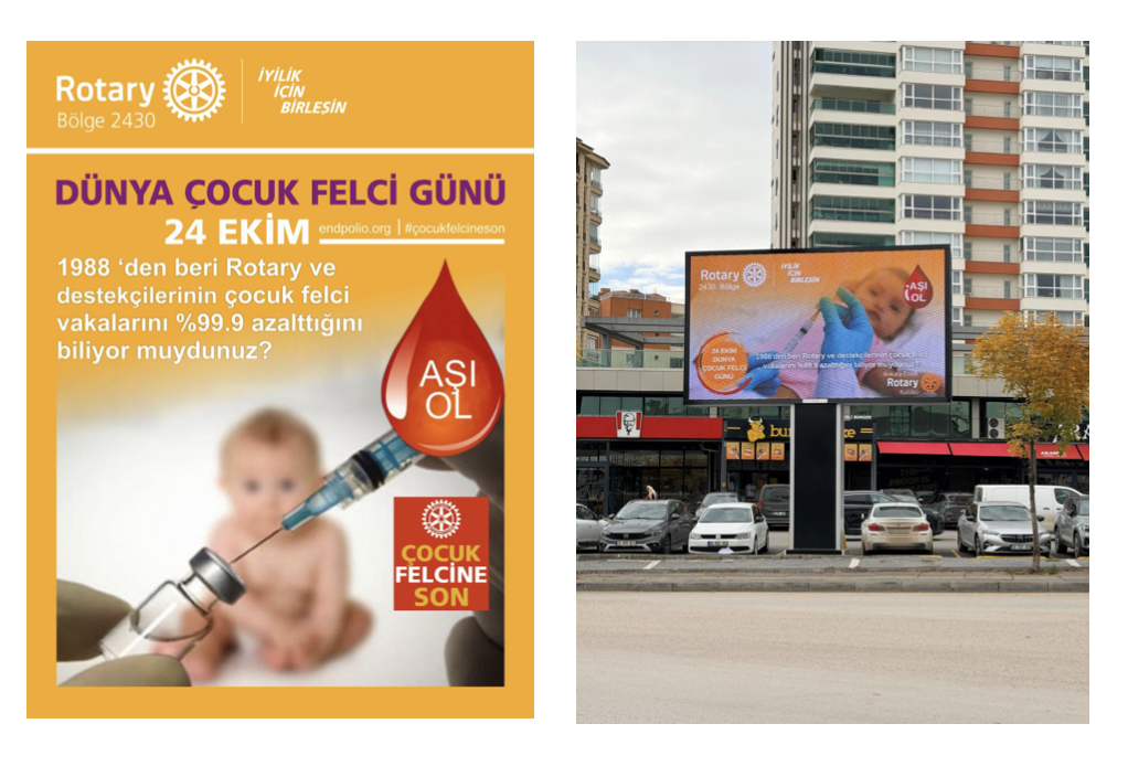 Dünya Polio Gününe kulüp olarak Batıkentte bulunan dev billboardlarla hakkını vererek dikkat çektik.