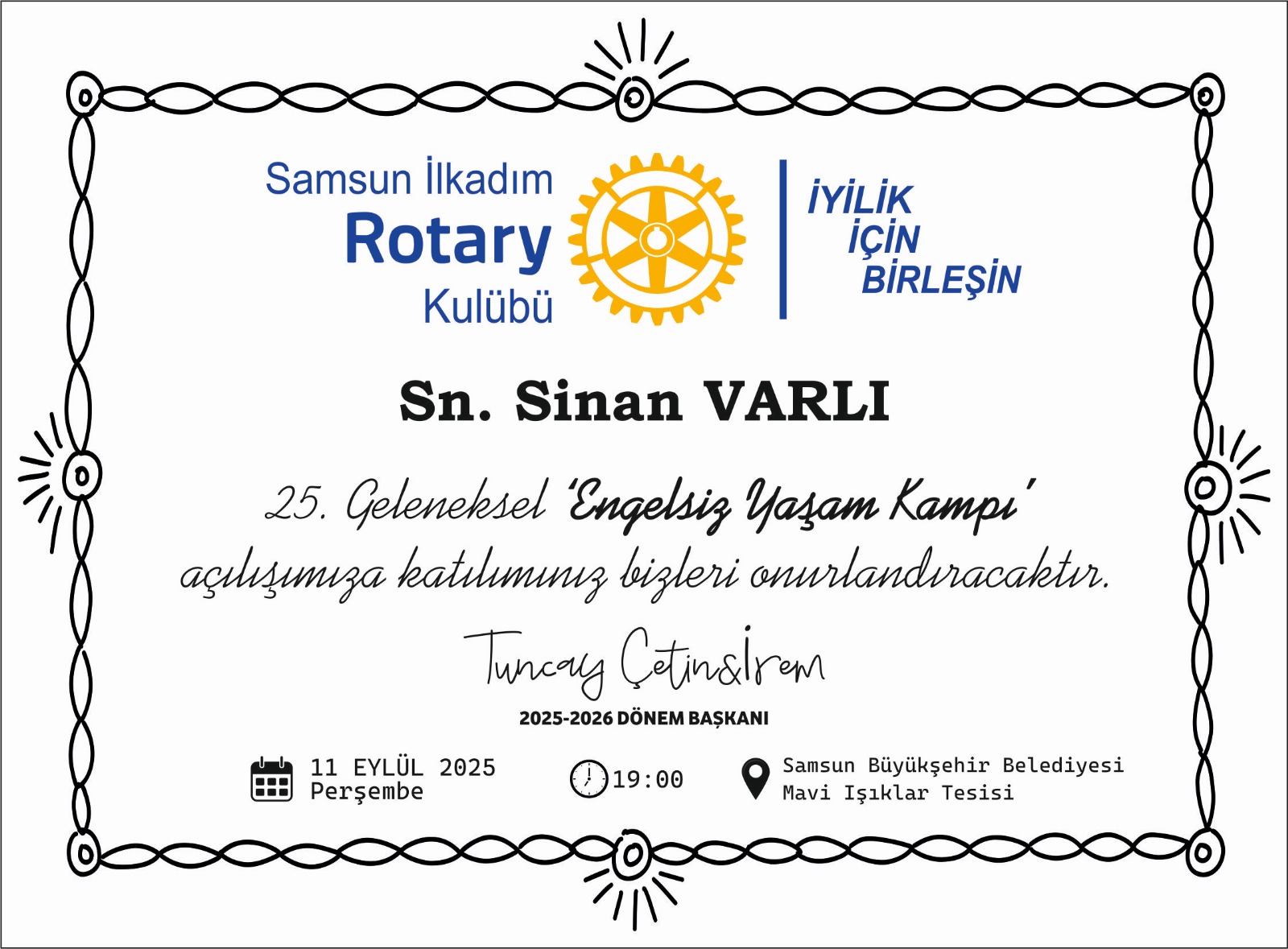 Bu sene Samsun’da 11-14 Eylül tarihleri arasında 24. sünü düzenlenen Engelsiz Yaşam Kampına Samsun Canik Rotary Kulübü olarak katılım sağladık ve projeye sponsor olduk.