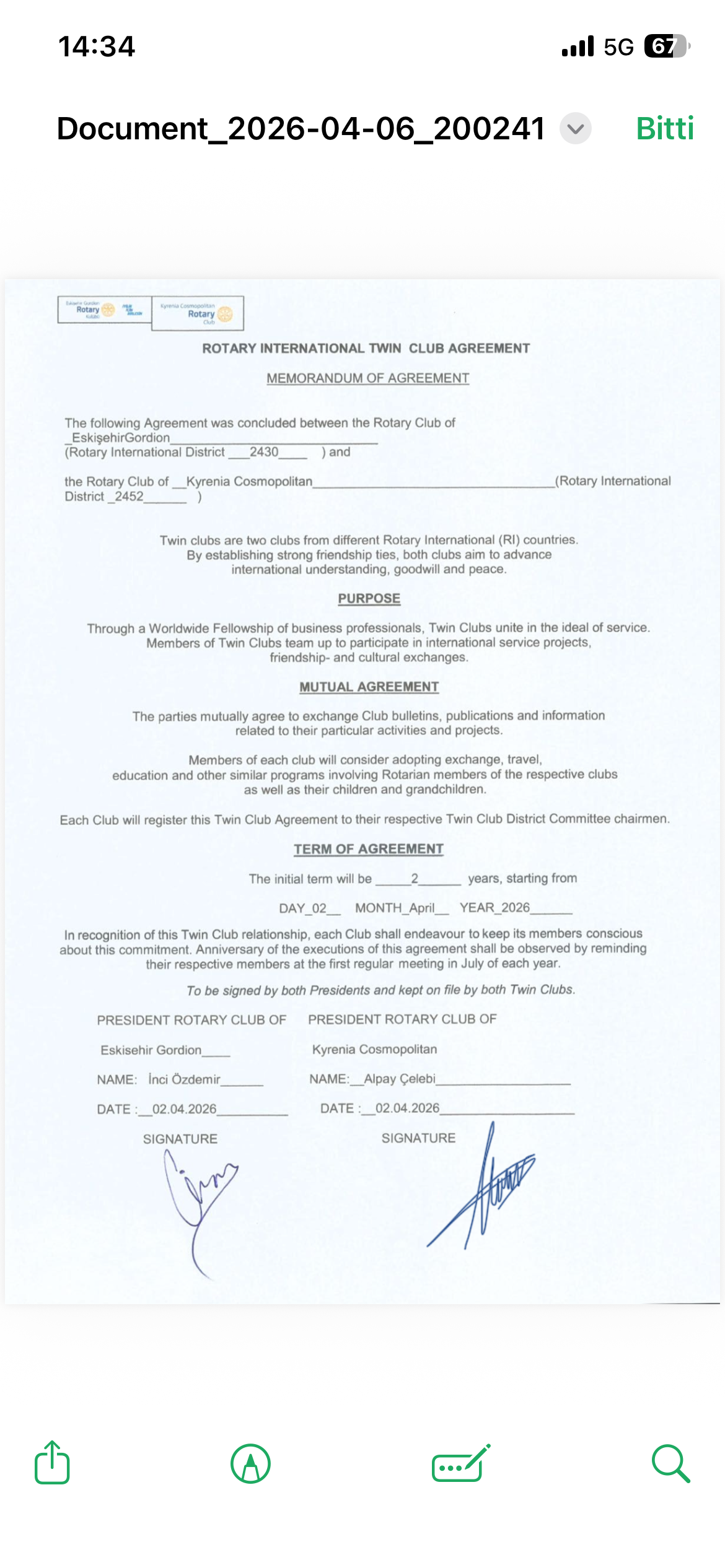 2452 ditrict den Kyrenia cosmopolitan RK İLE TWIN KULÜP SÖZLEŞMESİ İMZALANDI