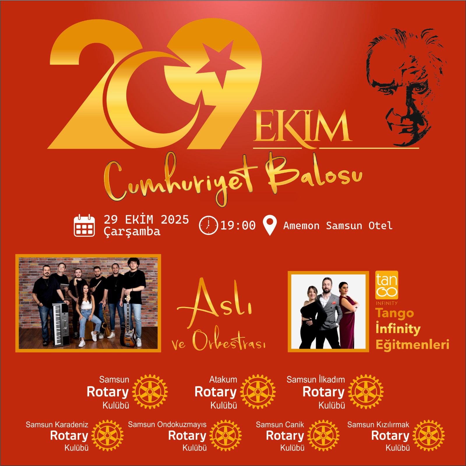 İlkadım ve Atakum Rotary Külüpleri olarak bölge görevi olarak düzenlenecek olan 29 EKim Cumhuriyet Balosunu gerçekleştirdik. Tüm Samsun Kulüplerinin yer aldığı Cumhuriyet Balosuna Atakum Belediye