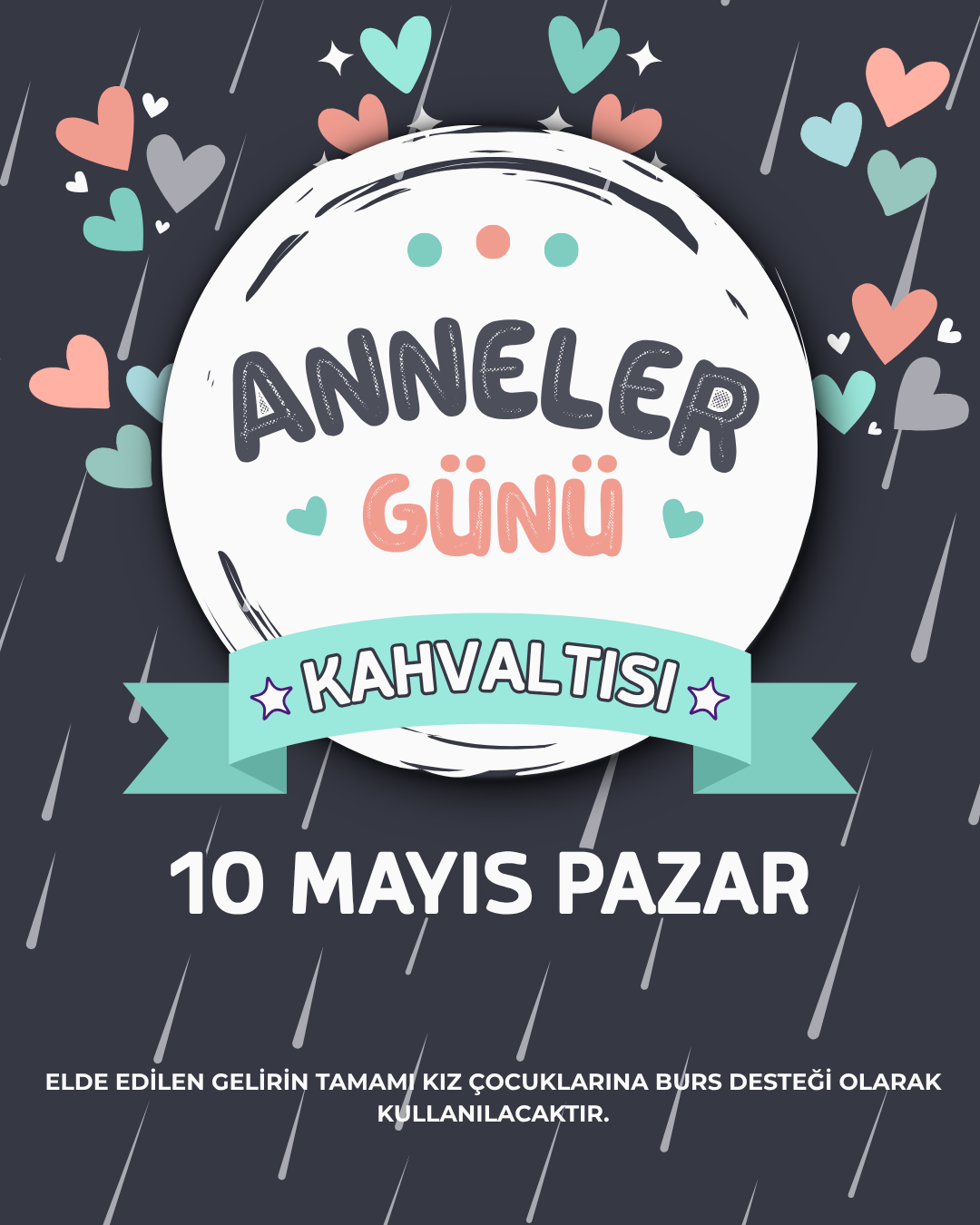 ANNELER GÜNÜNDE KAHVALTI ORGANİZE EDEREK BİLET SATIŞI GERÇEKLEŞTİRECEĞİZ. ELDE EDİLEN GELİR KIZ ÇOCUKLARINA BURS OLARAK VERİLECEKTİR.