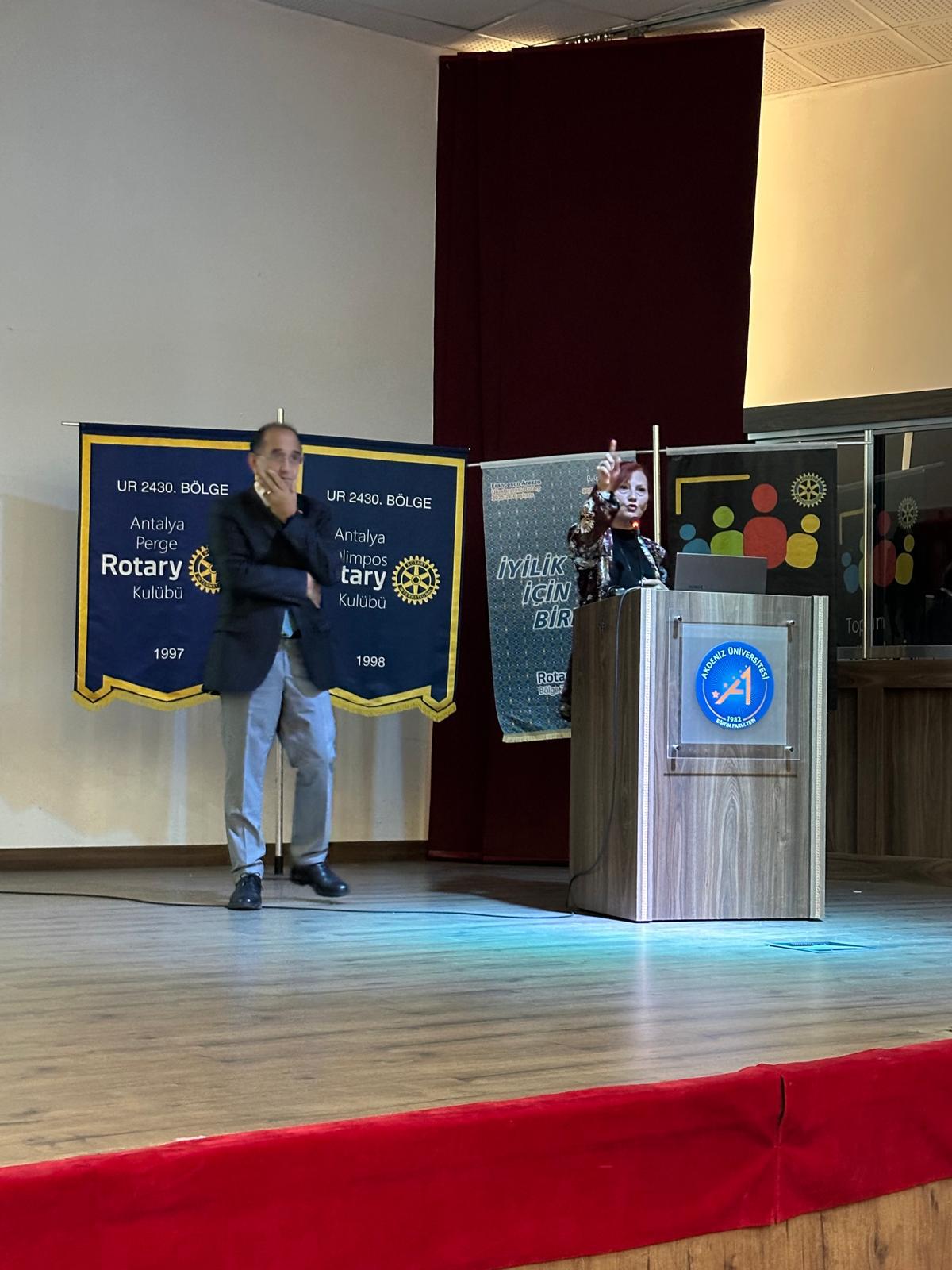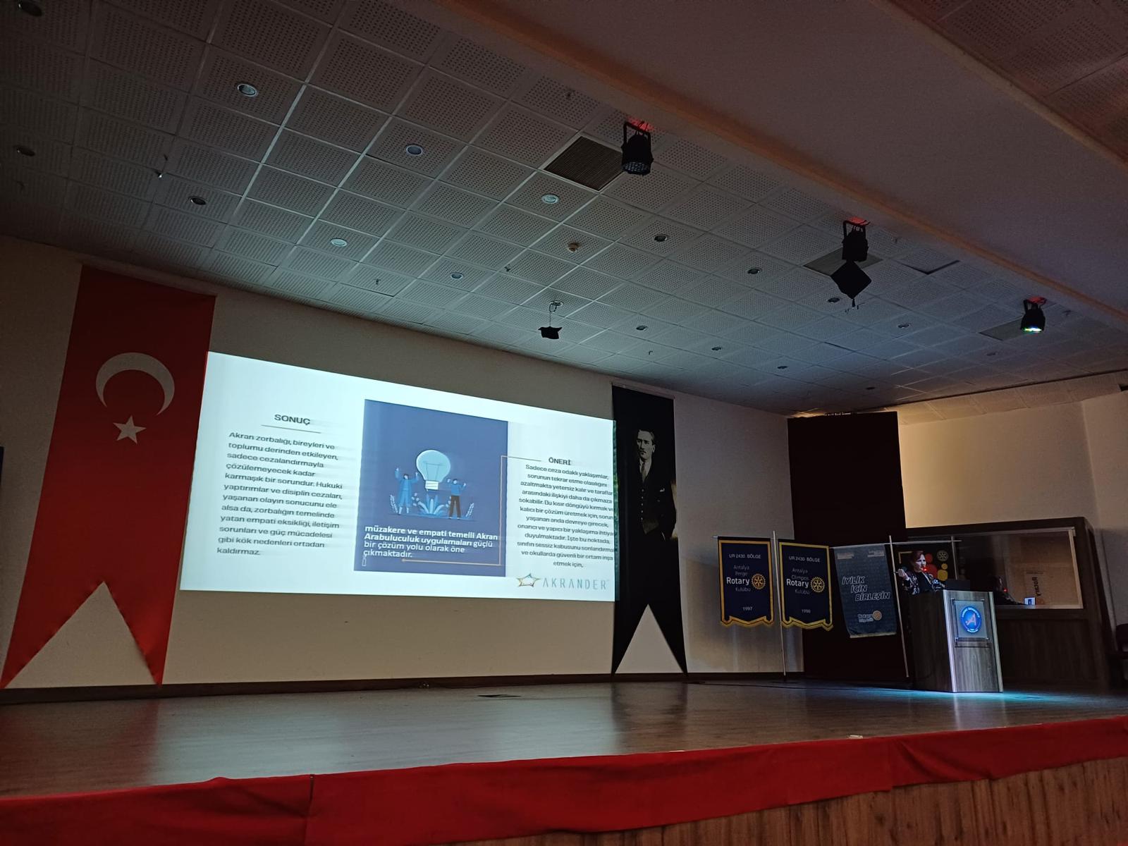 6 Aralık 2025 Cumartesi günü Akran Arabulucu ve Barış Yapıcı Liderler Projesinin tanıtım programı, Antalya Olimpos Rotary Kulübü ve Perge Rotary Kulübü iş birliğiyle, Ana Komite Başkanı Seçkin Arkan ve Tülay Arkan ın sunumlarıyla Akdeniz Üniversitesi Eğitim Fakültesi öğrencilerinin yoğun katılımıyla gerçekleştirildi.