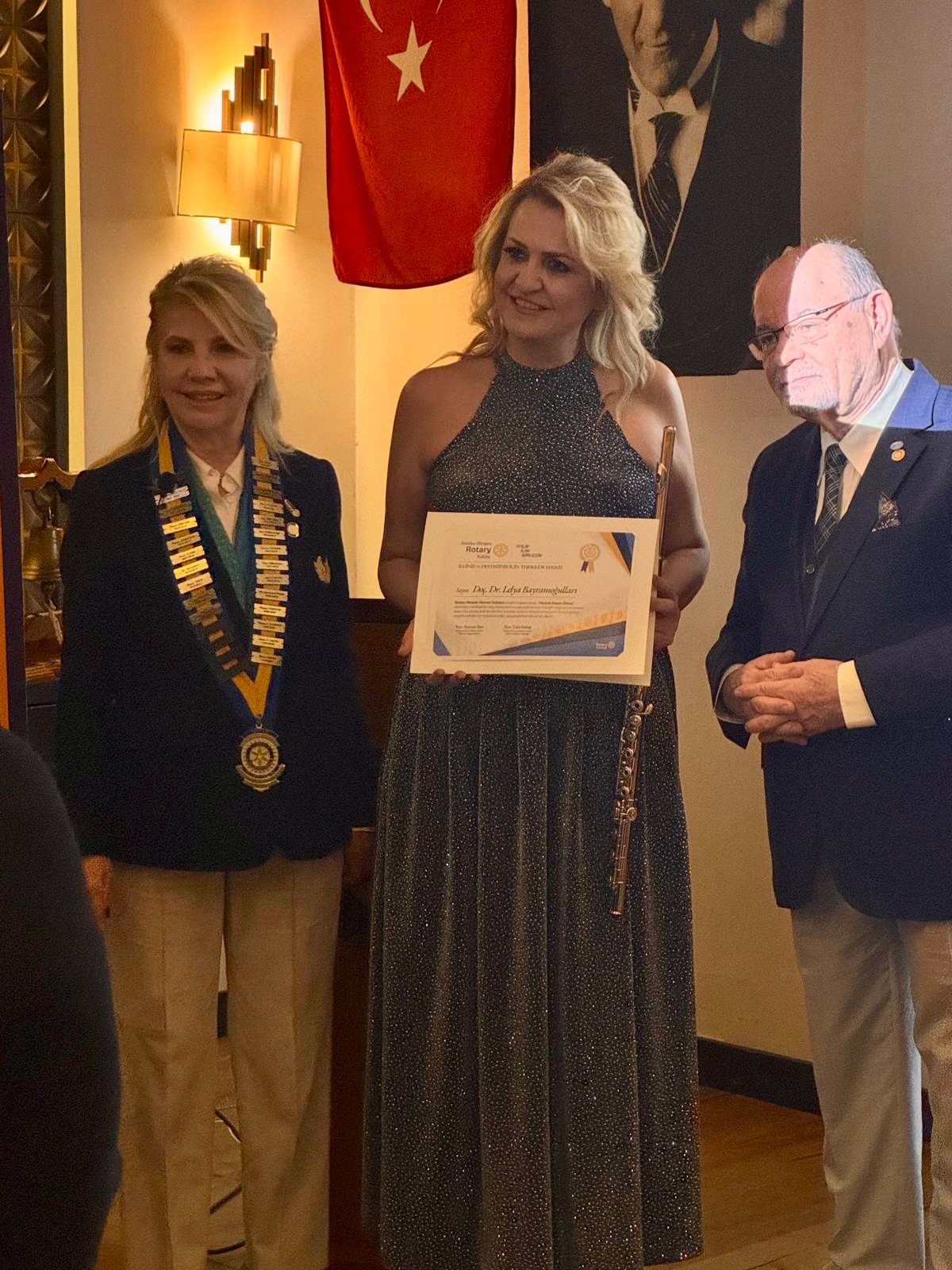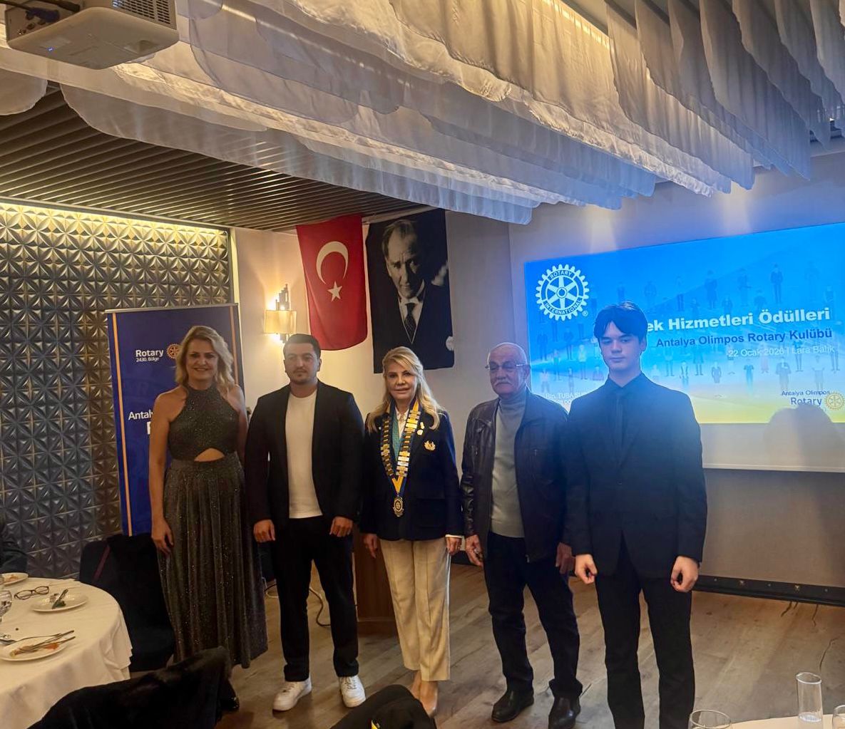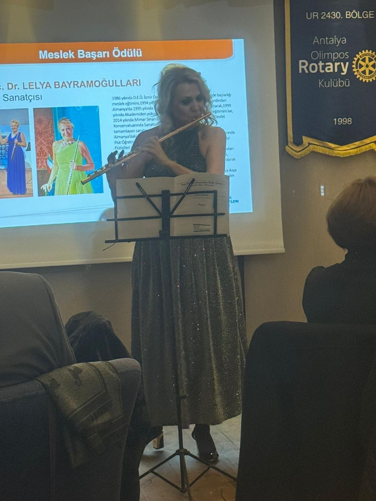 MESLEK BAŞARI ÖDÜLÜ Antalya Olimpos Rotary Kulübü tarafından düzenlenen Meslek Hizmet Ödülleri Töreni, 21 Ocak 2026 tarihinde Lara Balık Konyaaltı'nda 13. Grup Kulüplerden sorumlu Gvr Yrd. Nuran Koca, Vefa Ana Komite Bşk. Sedef Bircan, Kulüp üyeleri ve davetlilerin yoğun katılımıyla gerçekleştirilmiştir. Meslekleriyle topluma değer katan, etik anlayışla üretmeye devam eden ve ilham veren isimleri onurlandırmanın gururunu yaşadık. Törende Meslek Başarı Ödülü, sanatıyla ulusal ve uluslararası alanda ülkemizi başarıyla temsil eden Flüt Sanatçısı Doç. Lelya Bayramoğulları’na takdim edilmiştir. Sayın Bayramoğulları, konuşmasında Antalya Olimpos Rotary Kulübü’ne sanata ve sanatçıya verdiği önem ve destek için teşekkür etmiş, ardından gerçekleştirdiği flüt dinletisiyle geceye anlamlı bir katkı sunmuştur. Tören kapsamında yapılan değerlendirmede, Rotary’nin meslekler aracılığıyla topluma hizmet etmeyi, etik değerleri güçlendirmeyi ve kalıcı fayda yaratmayı amaçlayan evrensel bir hizmet hareketi olduğu vurgulanmıştır. “Kendinden Önce Hizmet” ilkesi doğrultusunda düzenlenen bu törenle, meslek onurunun ve emeğin görünür kılınması hedeflenmiştir. RSS Tuba Subaşı Antalya Olimpos Rotary Kulübü