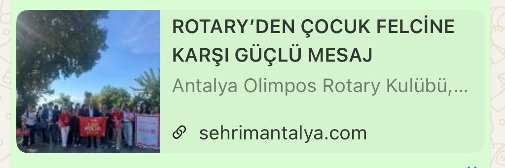 Uluslararası Hizmetler Komitesi kapsamında, Antalya Olimpos Rotary Kulübü olarak 24 Ekim Dünya Polio Günü vesilesiyle çocuk felcine karşı küresel mücadeleye dikkat çekmek amacıyla anlamlı bir farkındalık etkinliği düzenledik.
