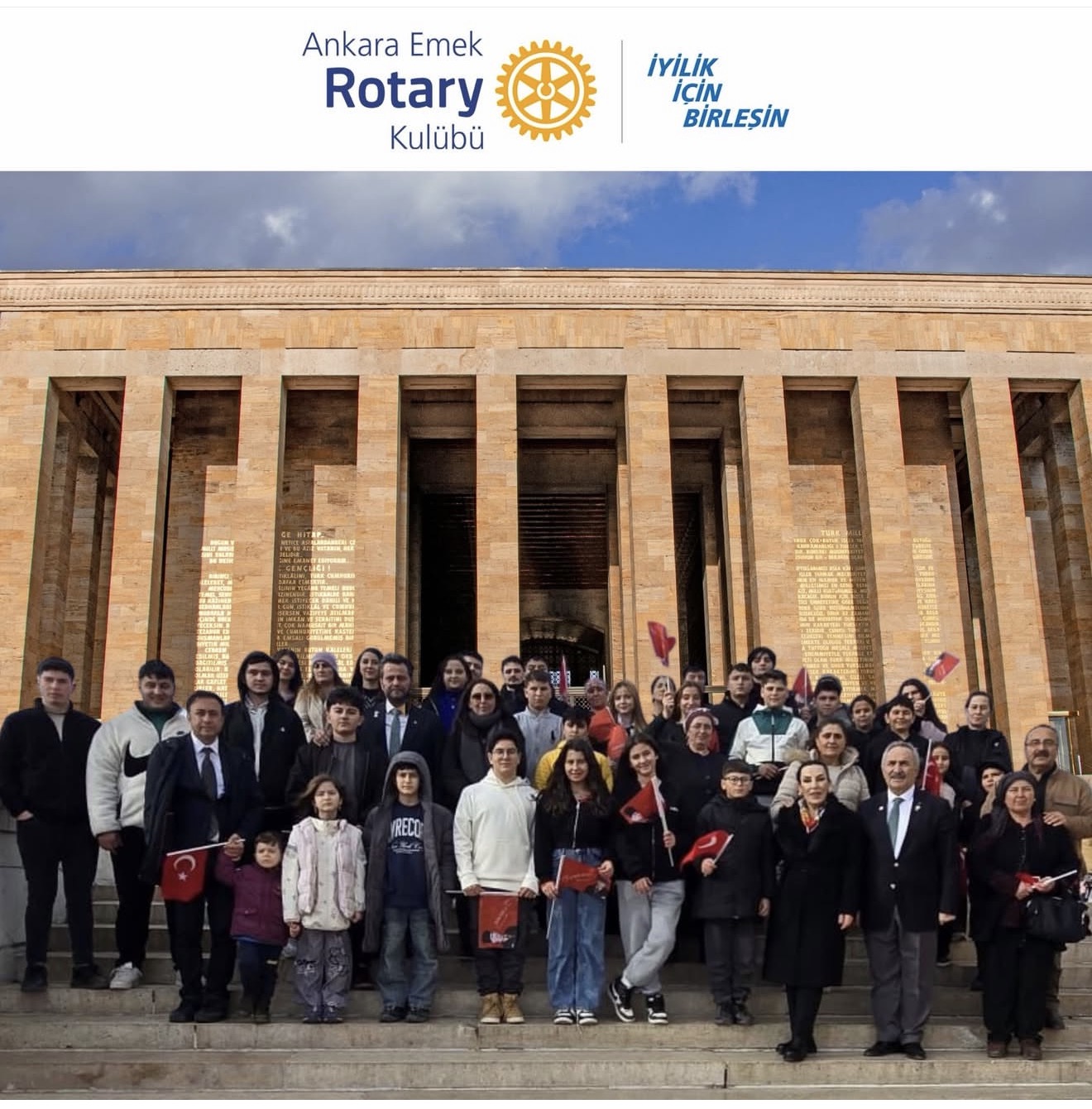 AMASYA YEŞİLIRMAK ROTARY KULÜBÜ İLE ORTAK YÜRÜTÜLEN PROJE KAPSAMINDA AMASYA UYGUR KÖYÜNDEN GELEN 37 ÇOCUK,TOPLAM 45 GENÇ KADIN VE ERKEK ,DAHA ÖNCE KENDİ ŞEHİRLERİNİN DIŞINA ÇIMAMIŞ,ANKARA VE ANITKABİRİ GÖRMEMİŞ MİSAFİRİMİZİ ATAMIZIN HUZURUNA ÇIKARDIK.KURTULUŞ MÜZESİ ZİYARETİNİ TAKİBEN MOZELEYE ÇELENK SUNMA TÖRENİNİ GERÇEKLEŞTİRDİK.