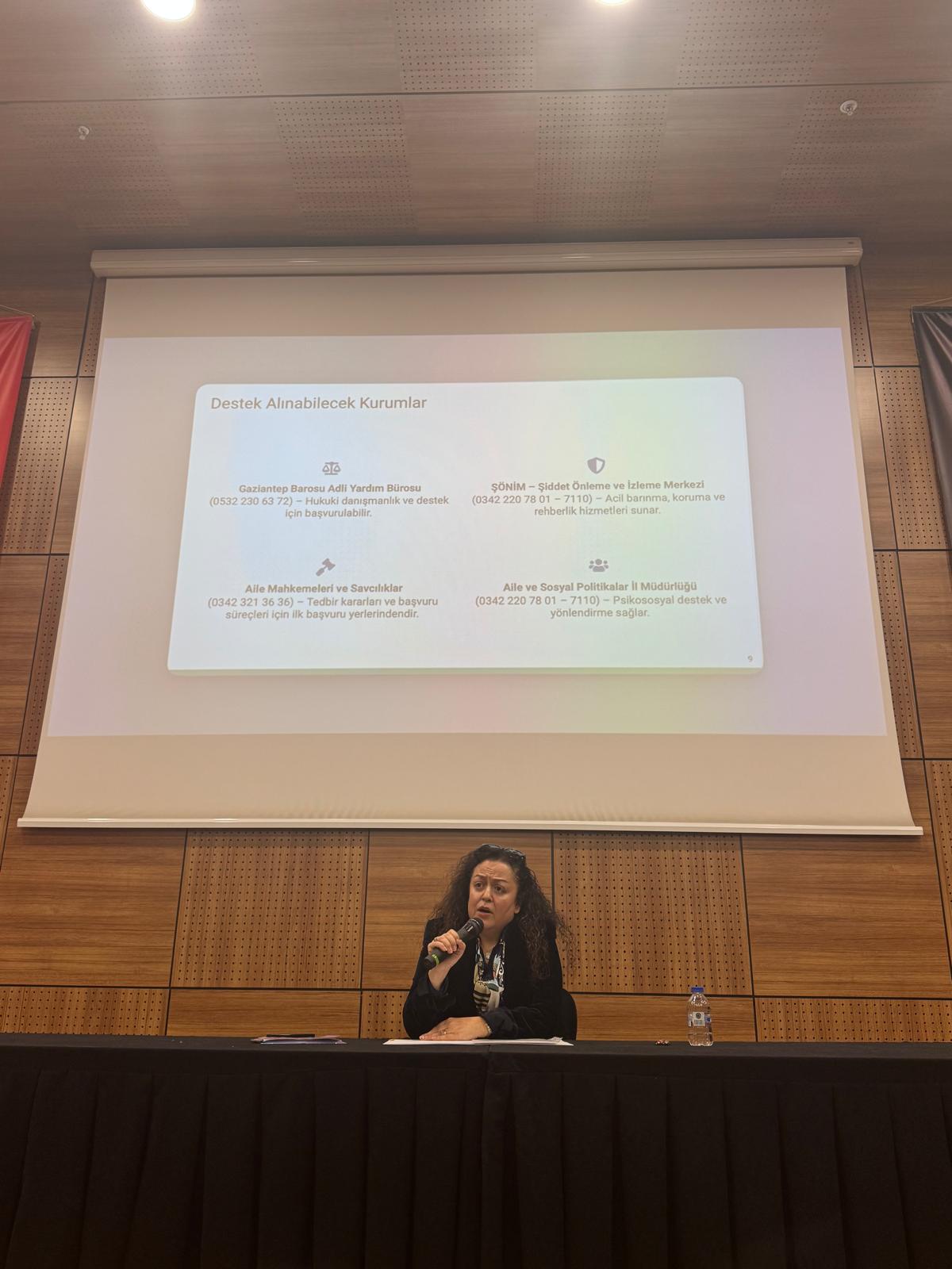 01.12.2025 tarihinde Guvarnörümüzün de katıldığı Şehitkamil Belediyesi ile birlikte organize edilen toplantıda 150 kadına Dokuz Eylül Üniversitesi Hukuk Fakültesi Medeni kürsüsünde görevli Dç. Dr. Nalan Tuncer'in sunumuyla .Medeni Kanunla ilgili bilgilendirmeler yapılarak yöremizde sıklıkla görülen kız çocuklarından mal kaçırılması konusu ve adaletin nasıl sağlanması gerektiği ile ilgili bilgilendirmeler yapılmış. Ayrıca Av.Meriç Güzel tarafından Kadına karşı şiddet konuları ve kadına karşı şiddete karşı yapılması gerekenler konusunda kadınlara hakları ve Adaletin nasıl sağlanması gerektiği konularında sunum yapılmıştır.