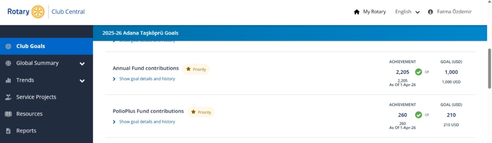 Kulübümüzün My Rotary kayıtlarına göre, PolioPlus fonuna toplam 260 USD bağış gerçekleştirilmiştir.