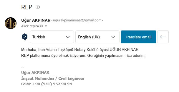 Adana Taşköprü Rotary Kulübü olarak 2024-2025 Döneminde Rotary Enformasyon Platform’u REP’e kayıtlarımız yapılmış olup 2025-2026 döneminde kulübümüze kazandırdığımız yeni üyelerimiz de REP Kayıtlarını tamamlamış olup Adana Taşköprü Rotary Kulübü olarak REP’e %80 ve fazlası üye ile kayıt yapmış bulunmaktayız.