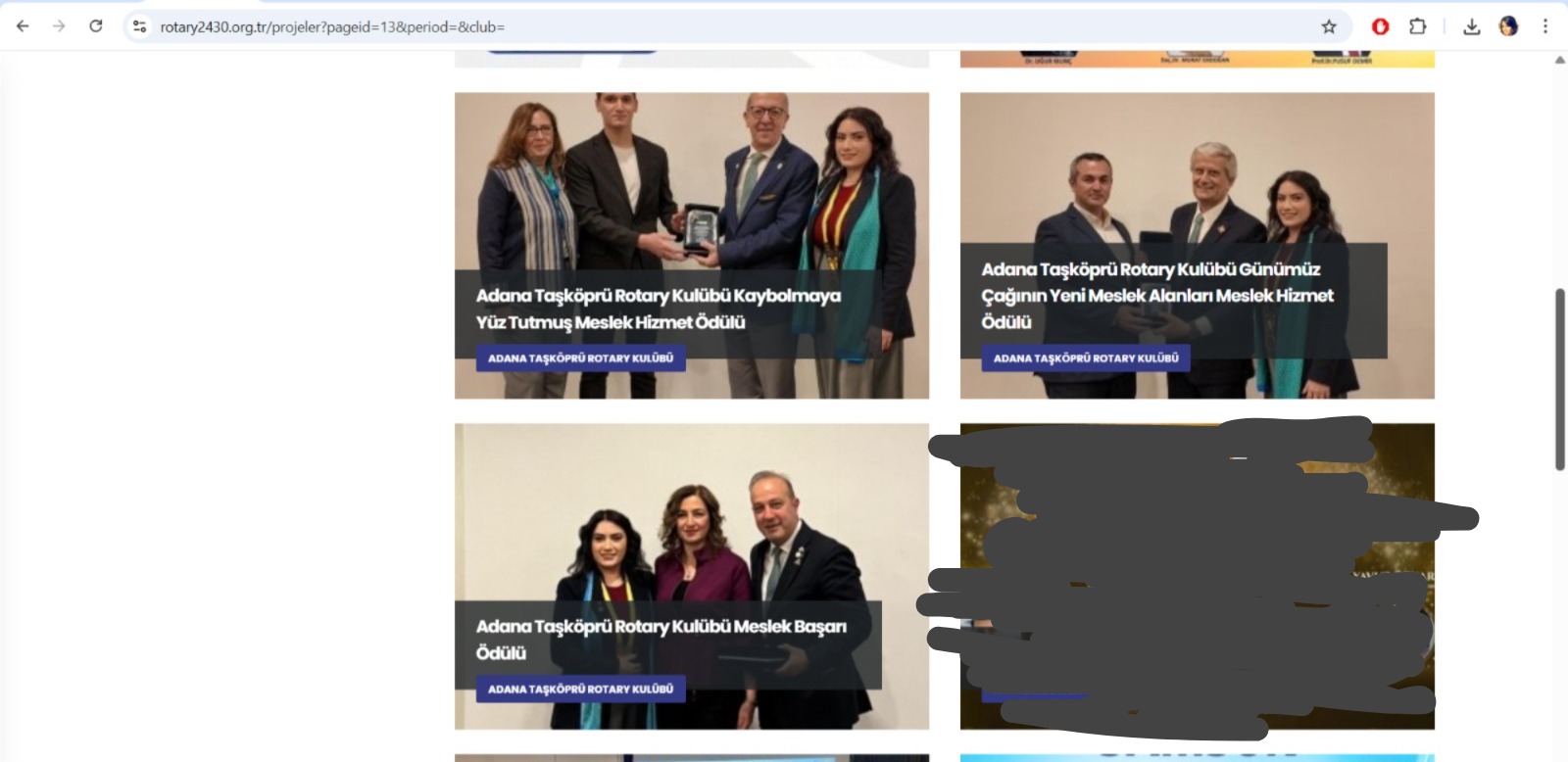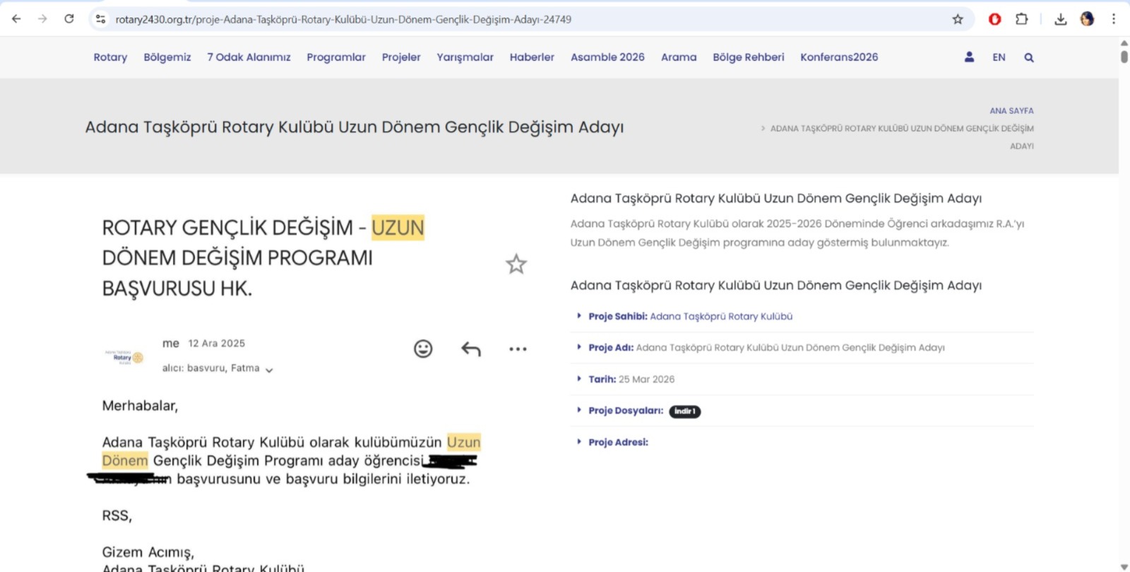 Adana Taşköprü rk Dönem boyunca gerçekleştirilen projelerin Rotary 2430. Bölge web sayfasına düzenli olarak yüklenmesi