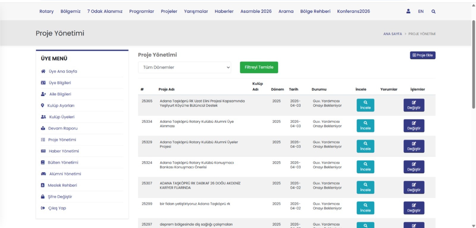 Dönem boyunca gerçekleştirilen projelerin Rotary 2430. Bölge web sayfasına düzenli olarak yüklenmesi kapsamında, kulübümüz tarafından yapılan proje ve faaliyetlere ilişkin haberler sisteme aktarılmış olup, yükleme süreci dönem boyunca kesintisiz şekilde devam etmektedir.