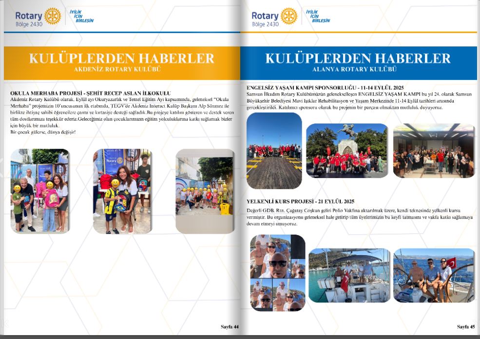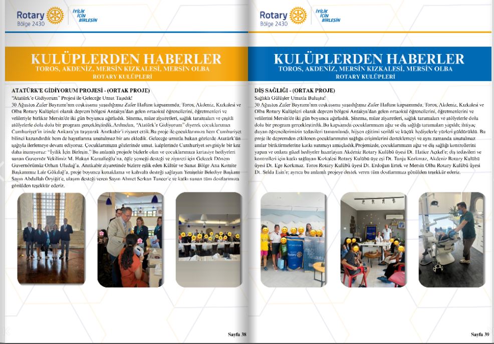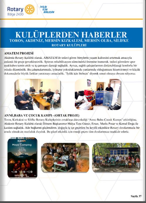 Akdeniz Rotary Kulübü Guvernör Aylık Mektubunda Kulüp Projesinin yayınlanması Projesi