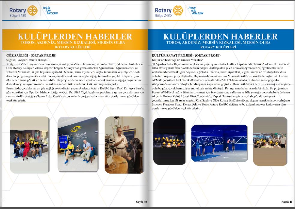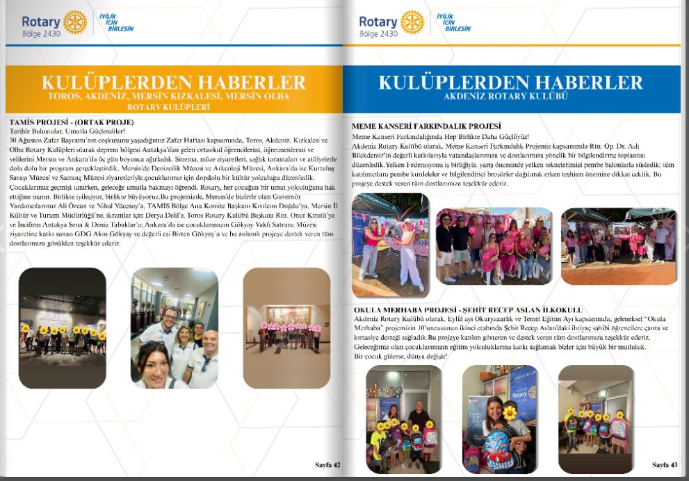 Akdeniz Rotary Kulübü olarak gerçekleştirdiğimiz projeleri düzenli olarak Guvernör Aylık Mektubu için paylaşmaya devam ediyoruz.
