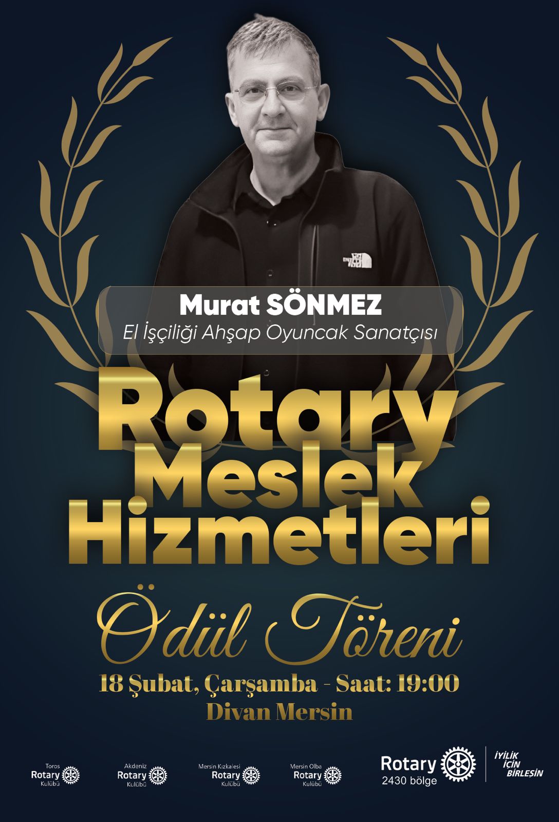 18 Şubat’ta Mersin Divan Otelde Akdeniz Rotary Kulübü ,Toros Rotary Kulübü, Mersin Kızkalesi Rotary Kulübü ve Olba Rotary Kulübü ile birlikte gerçekleştirdiğimiz 2025-2026 Dönemi Meslek Hizmetleri Ödül Töreni’nde, şehrimize değer katan kıymetli iş insanlarını onurlandırmanın gururunu yaşadık. Meslek Hizmetleri Ödülleri 4 ana kategori de toplam 8 tane ödül verildi. Ödül töreninde Kaybolmaya Yüz Tutmuş Meslekler Kategorisinde ; Murat Sönmez ( Ahşap Oyuncak Sanatçısı ) Ali Can Ay (Mekanik Ustası – Tarsus Ulu Cami saat Kulesinin Saat Tamircisi ) olmak üzere 2 değerli kişiye ödülleri takdim edildi. Meslek etiğini, dürüstlüğü ve topluma katkıyı ilke edinmiş; çalışmalarıyla ilham veren başarıları ile öne çıkan değerli isimleri ödüllendirmek bizler için büyük bir mutluluktu.