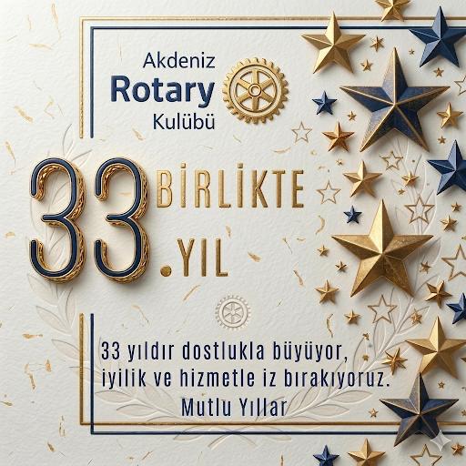 Akdeniz Rotary Kulübümüzün 33. kuruluş yılını, 31 Mart akşamı; değerli misafirlerimiz, kıymetli üyelerimiz ve eşlerimizle birlikte gerçekleştirdiğimiz anlamlı kuruluş yemeğinde, dostluk ve vefa duygularıyla kutladık.