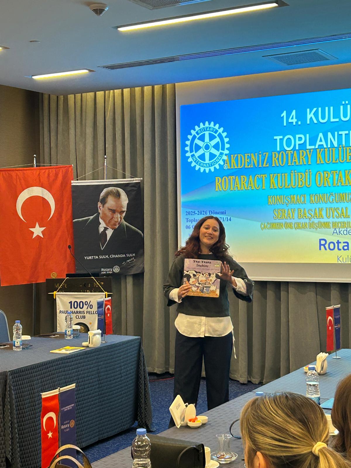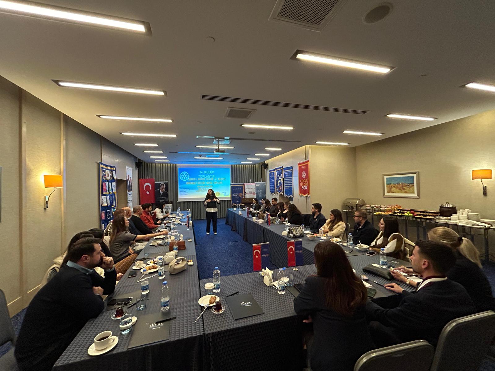 1-Dönemimizin 14. toplantisini, Divan Otelde Akdeniz Rotaract Kulübü ile ortak toplanti olarak gerçekleştirdik. Konusmaci konuğumuz Seray Basak Uysal, yaratici düsünme, elestirel düsünme, isbirligine dayali düsünme ve özenli düsünme üzerine bizlerle degerli paylasimlarda bulundu. Programin sonunda ise yetiskinler için oyun saati ile keyifli bir kapanis yaptık.