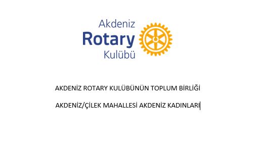 • Proje Adı: Akdeniz Rotary Kulübü Rotary Toplum Birliğimiz ile Ortak Proje Yapılması