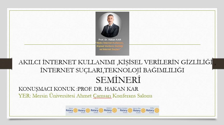 6 Aralıkda Akdeniz Rotary Kulübü olarak, Mersin Üniversitesi Eğitim Fakültesi iş birliği ve Mersin’deki Rotary kulüplerinin katkısıyla, geleceğin öğretmenlerine yönelik önemli bir farkındalık semineri gerçekleştirdik. Konuşmacı Konuğumuz Prof. Dr. Hakan Kar,