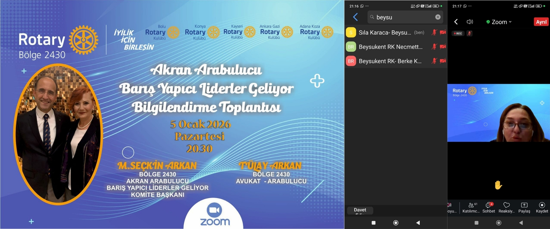 5 Ocak 2026 tarihinde Bolu, Konya, Kayseri, Ankara Gazi ve Adana Koza Rotary Kulüpleri tarafından düzenlenen Akran Arabulucu ve Barış Yapıcı Liderler Semineri'ne kulübümüzden 3 üye (Necmettin Yeta, Sıla Karaca, Berke Karaer) ile katılım gösterdik.