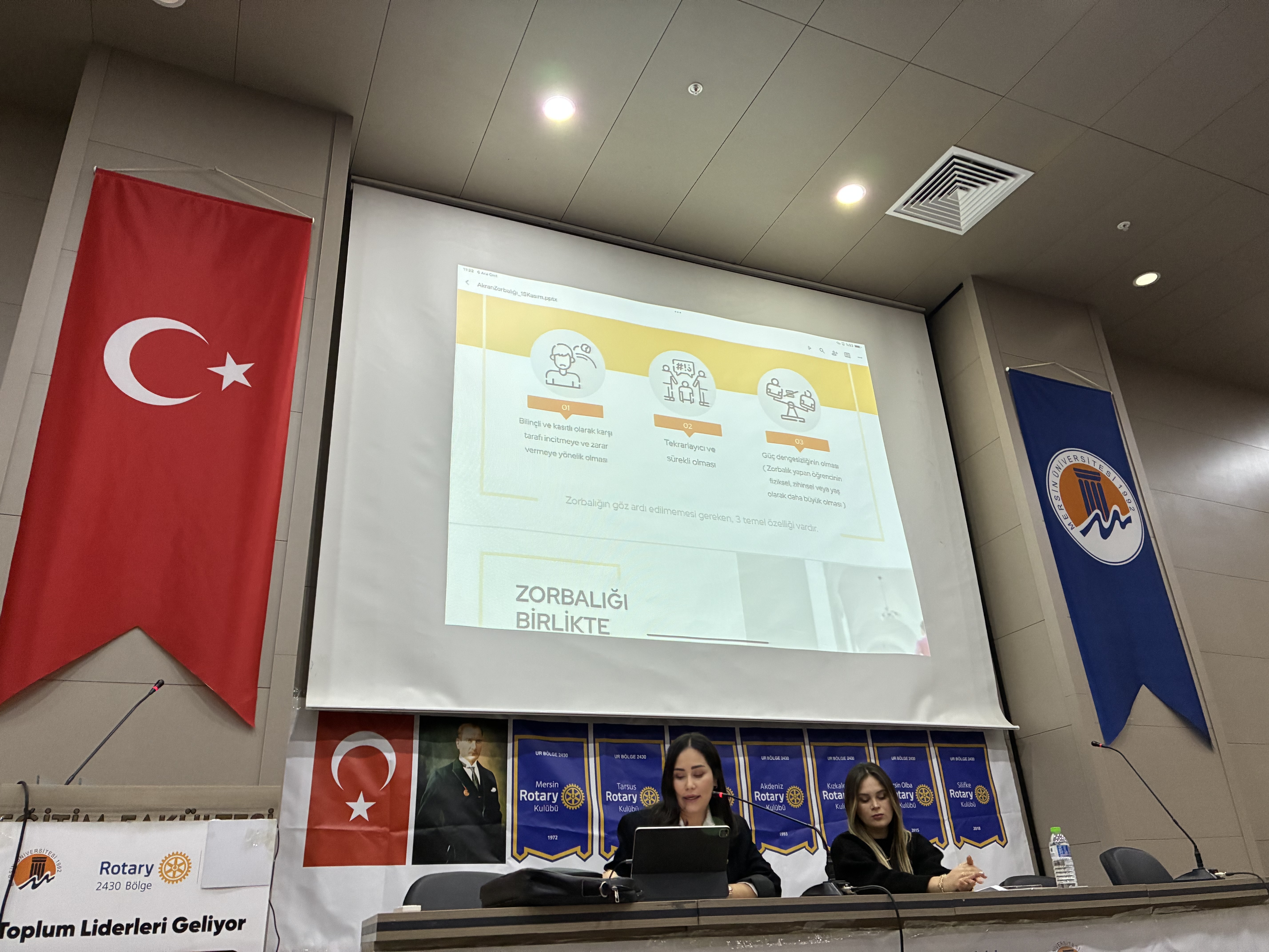Mersin Üniversitesi Eğitim fakültesi öğrencilerine Uzman psikolog Büşra Sarı Ertek ve Avukat Gülnur Doğmuş Ünal tarafından Akran arabulucu, Barış yapıcı lider nasıl olunur akran zorbalığı, çocuk istismarı ve hukuki yaptırımlar konularında eğitim semineri verildi.