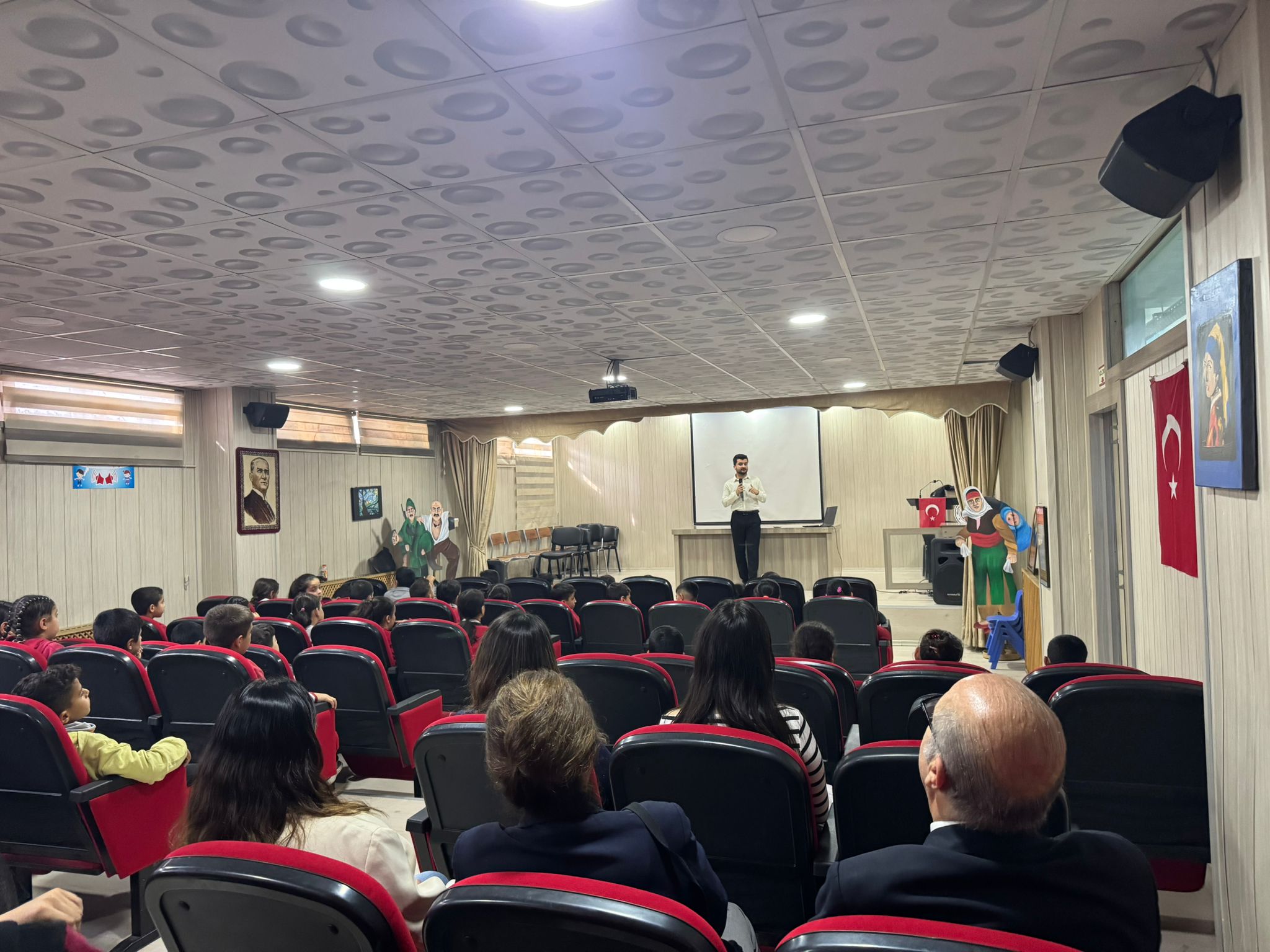 Guvarnör ziyareti kapsamında Gaziantep Şahinbey Mustafa Marangoz ilkokulunda ilk okul öğrencilerine Yüzyüze Psikolojik Danışmanlıktan Kln.Psk.Yusuf Soylu tarafından akran zorbalığı farkındalığı ile ilgili sunum gerçekleştirimiştir.