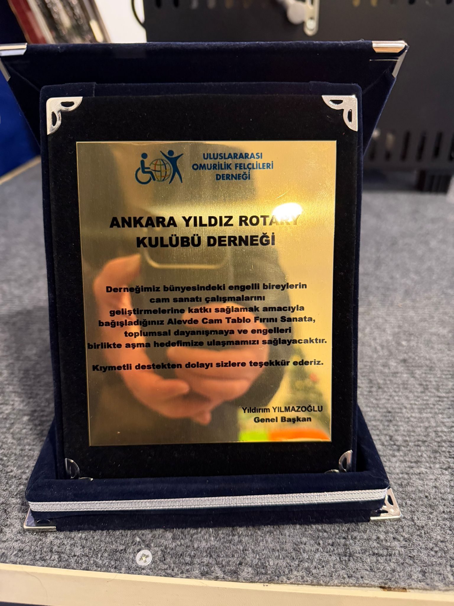 Ankara Yıldız Rotary Klübü olarak, Omurilik Felçlileri Derneğinin yürütmekte olduğu cam sanatına destek olamak amacıyla 1 adet Cam Tavlama Fırını temin edilerek derneğe bağışlanmıştır. Bu sayede, üretilen cam objelerin fırın hizmeti için Denizli'ye gitmelerine gerek kalmamış, kendi atölyelerinde ürünlerin tavlama ve füzyon işlemlerini gerçekleştirebiliyor olacaklardır. Omurilik Felçlileri Derneği bünyesindeki engelli bireylerin cam sanatı çalışmalarını geliştirmelerine katkı sağlanmıştır. STK işbirliği projesidir.