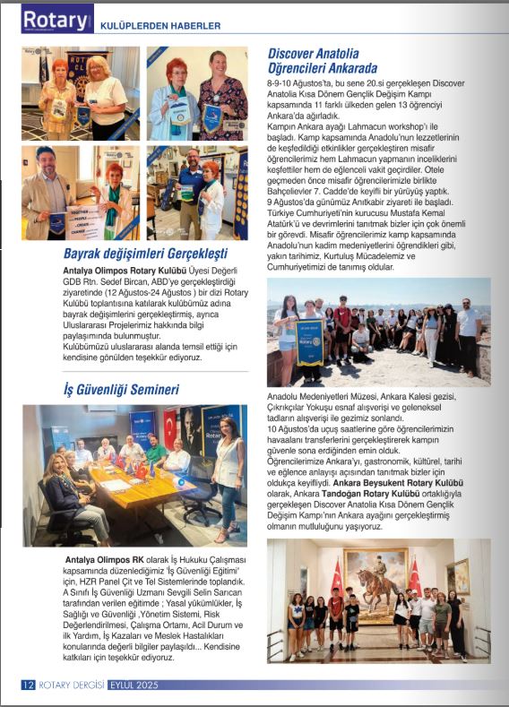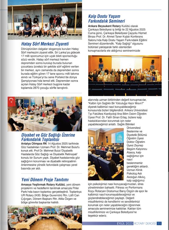 Türkiye'deki 3 Rotary bölgesi tarafından ortaklaşa çıkarılan Rotary Dergisi'nde 2025-26 döneminde 5 projemiz yayınlanmıştır.