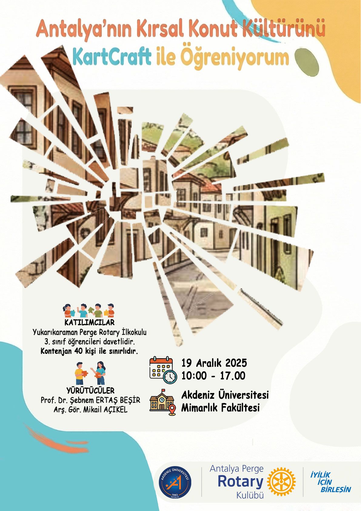 Kültürel miras farkındalığını artırmak, erken yaş gruplarında mekânsal kültür bilincini desteklemek ve toplum temelli tasarım süreçlerine öğrencilerin katılımını güçlendirmek amacıyla düzenlenen etkinlikte, Yukarıkaraman Perge Rotary İlkokulu 3. sınıf öğrencileri ile bir araya gelindi.