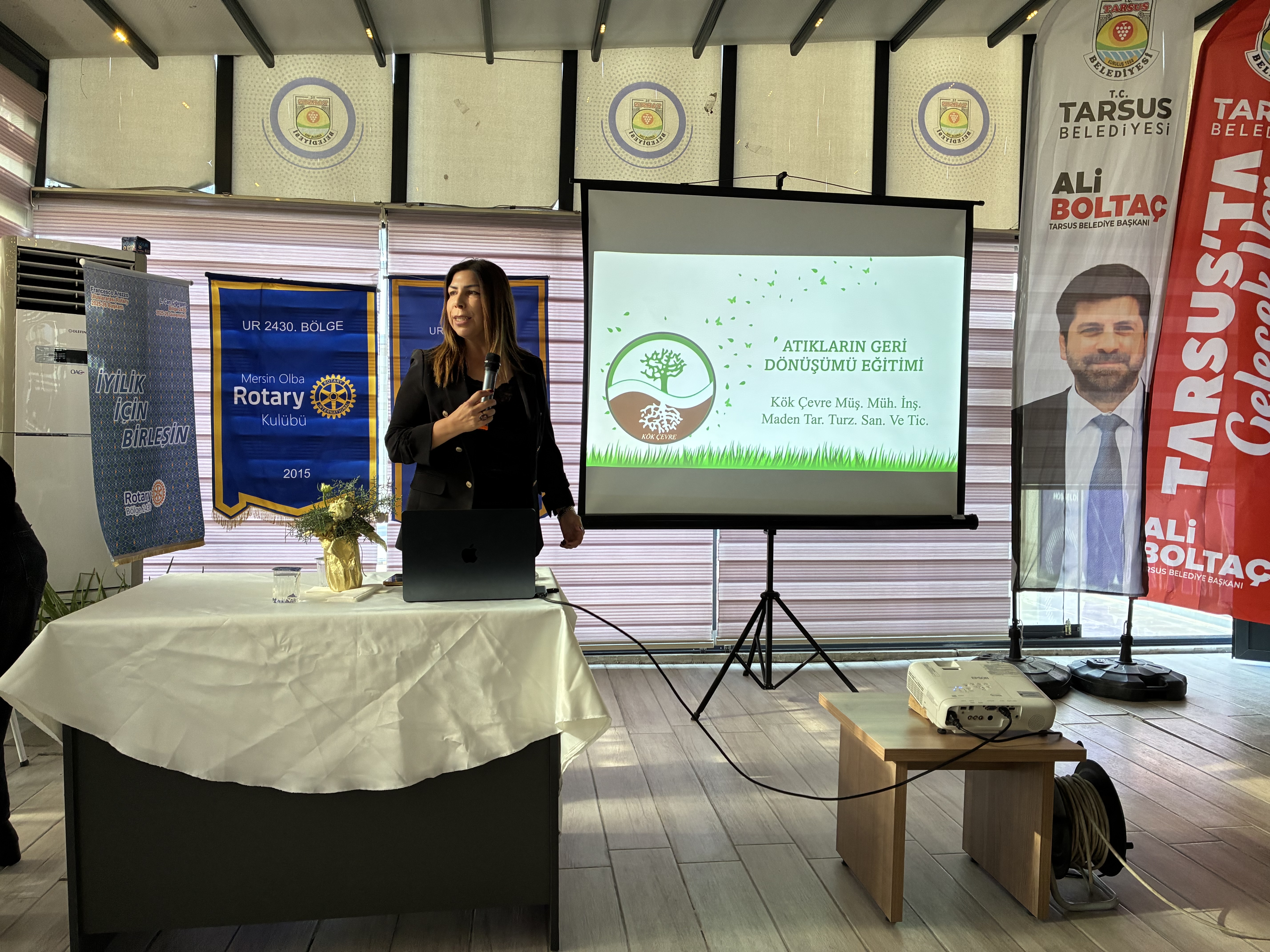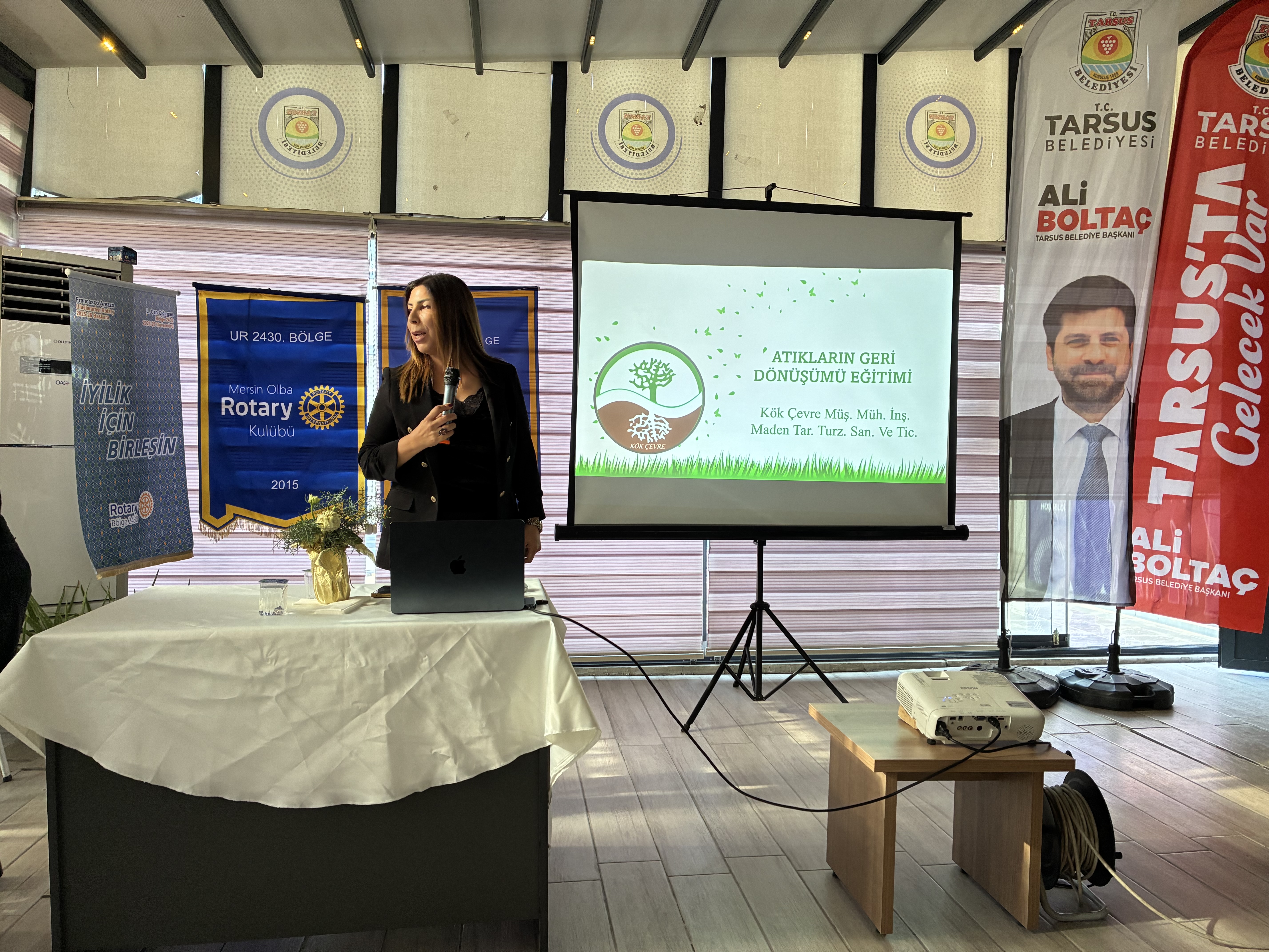 Tarsus Belediyesi ve Tarsus Rotary Kulübü ile ortaklaşa düzenlediğimiz Atıkların geri dönüşümü, sıfır atık, atıkların ekonomiye kazandırılması ile ilgili farkındalık eğitimi düzenlendi. Eğitimi Yüksek Çevre Mühendisi Ayşe Kök tarafından verildi.
