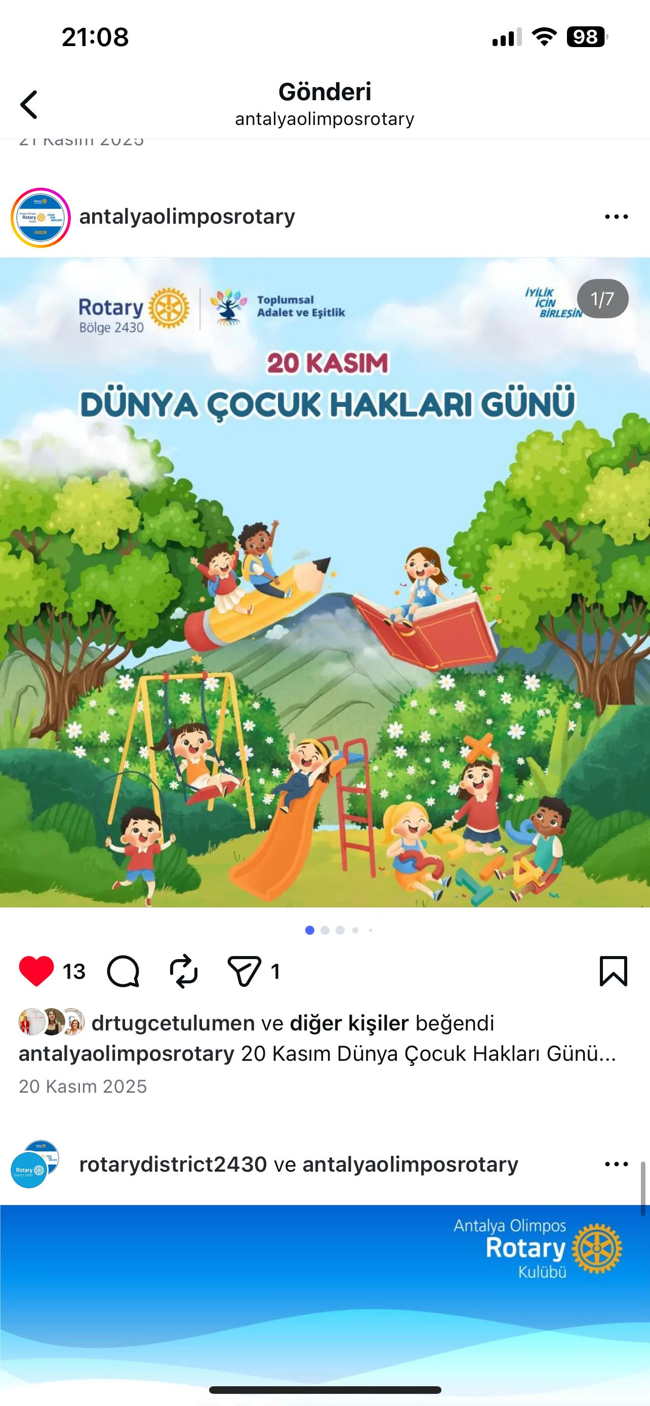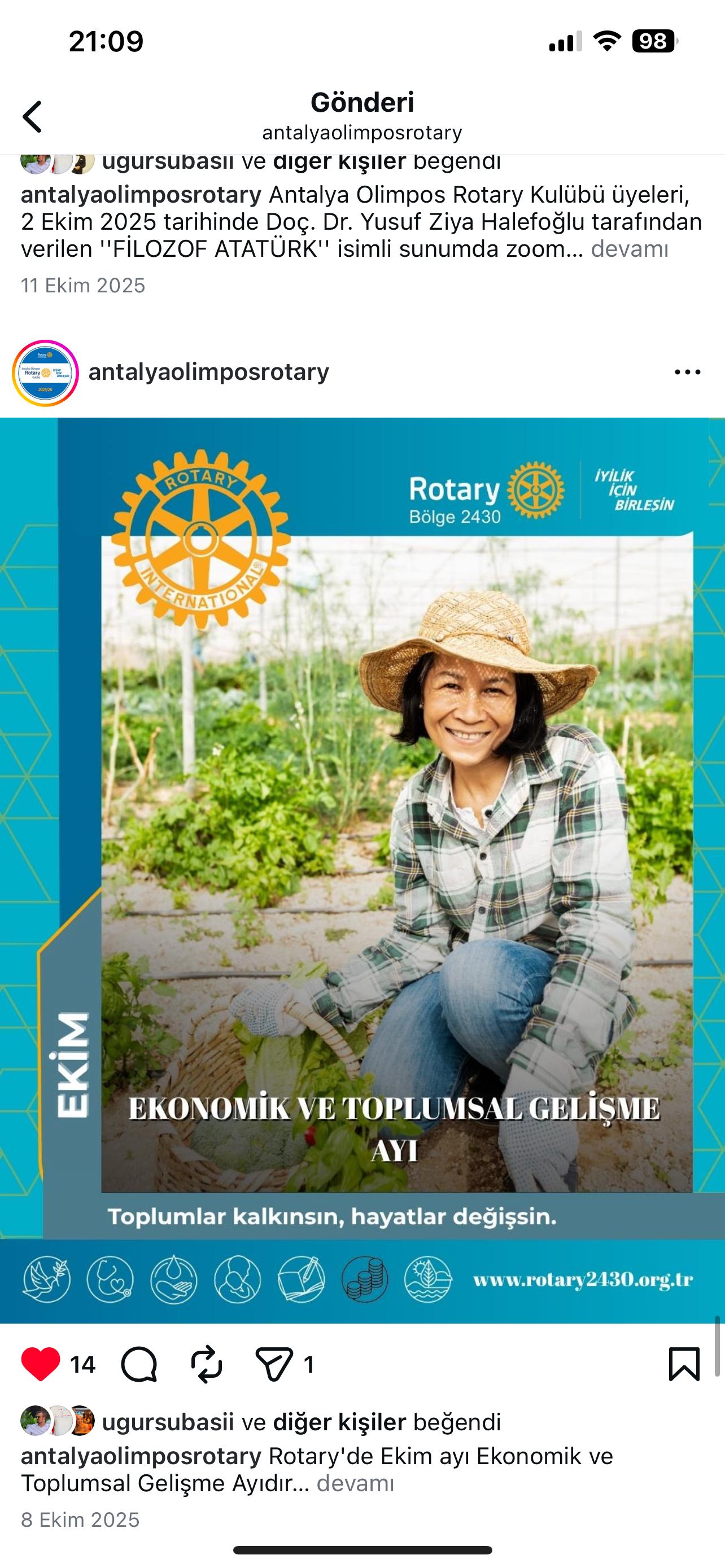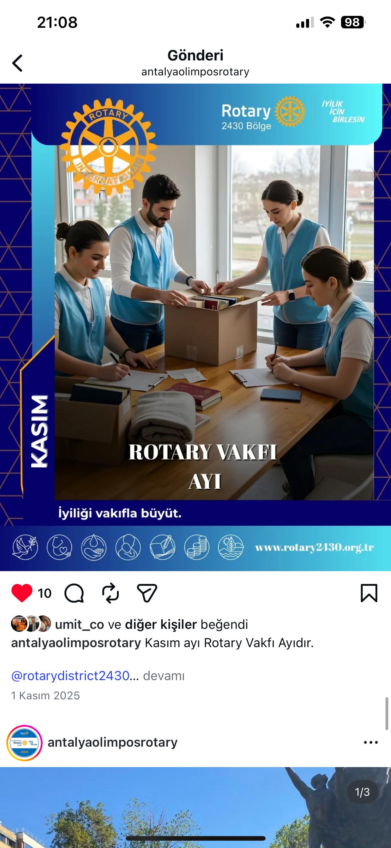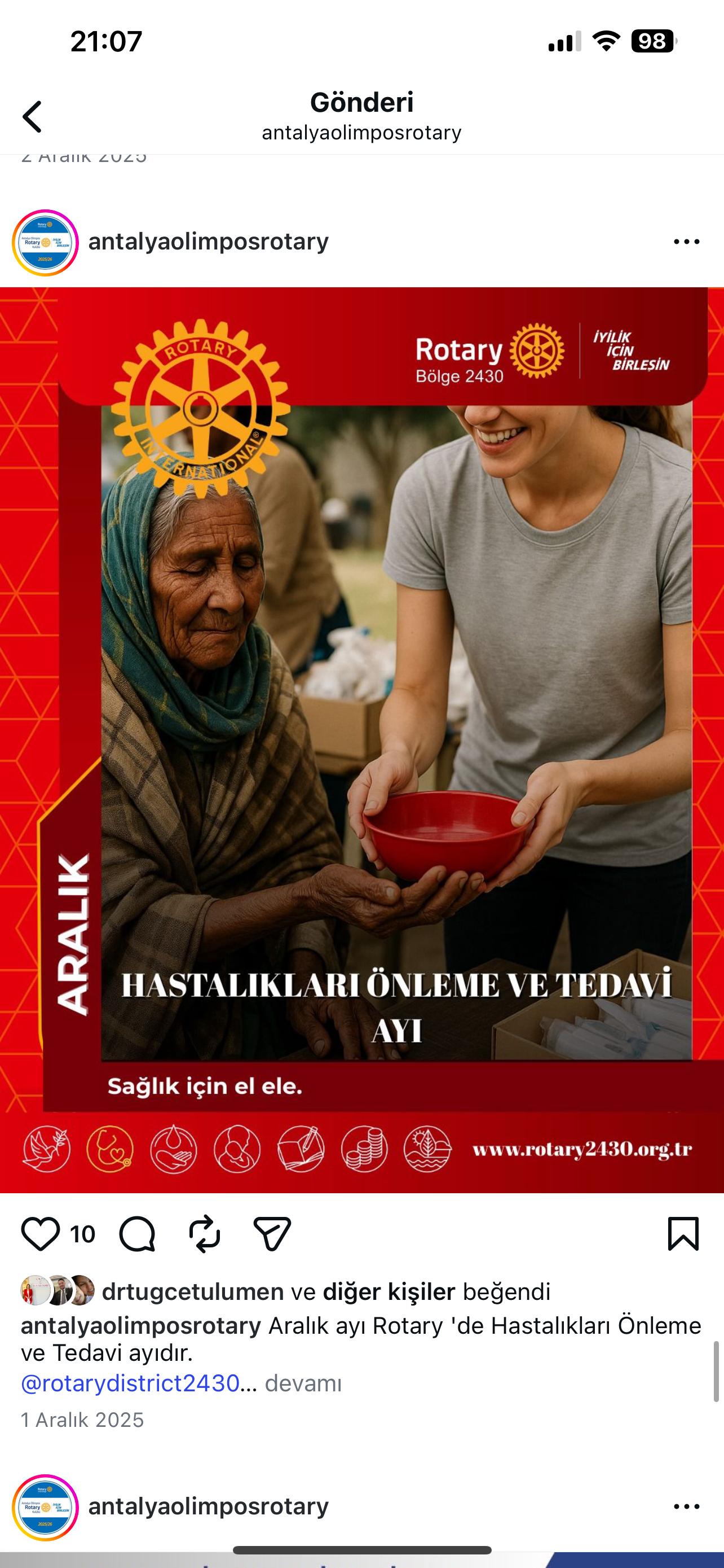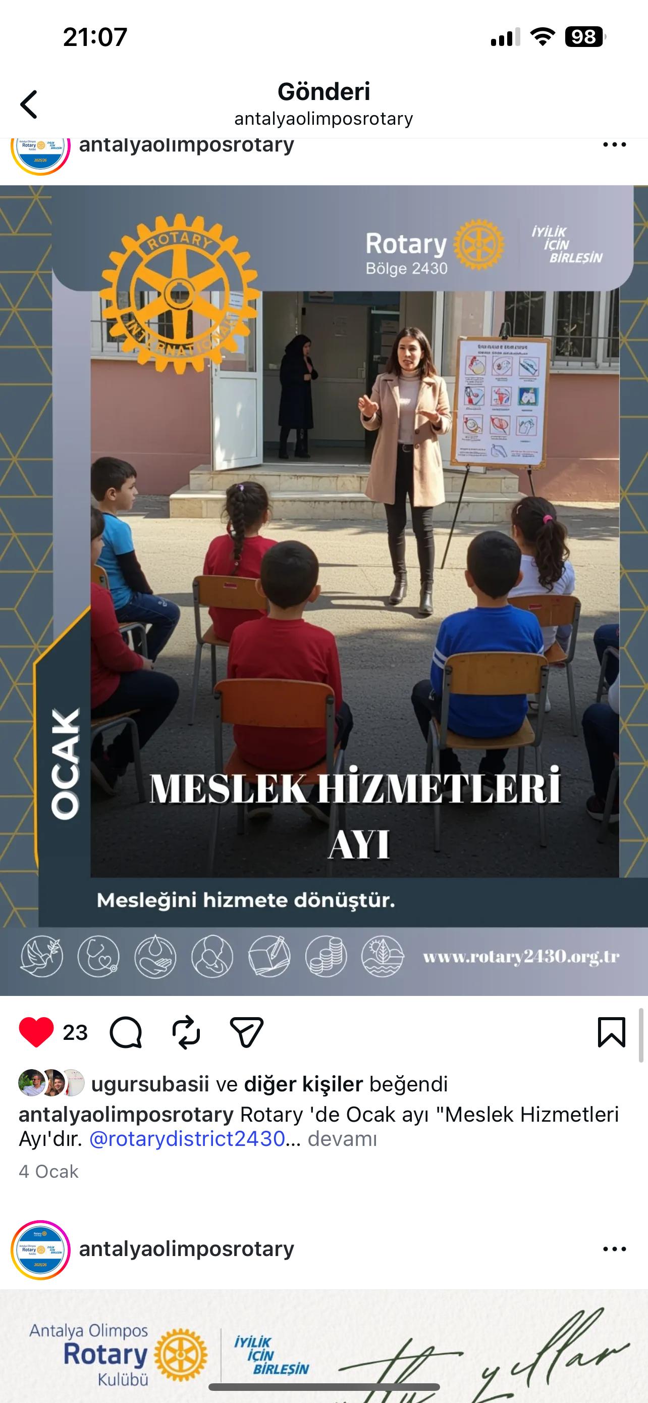 Antalya Olimpos Rotary Kulübü olarak kulüp hesabımız üzerinden Bölge Sosyal Medya Postları Repost edilmektedir. RSR Tuba Subaşı Antalya Olimpos Rotary Kulübü DB