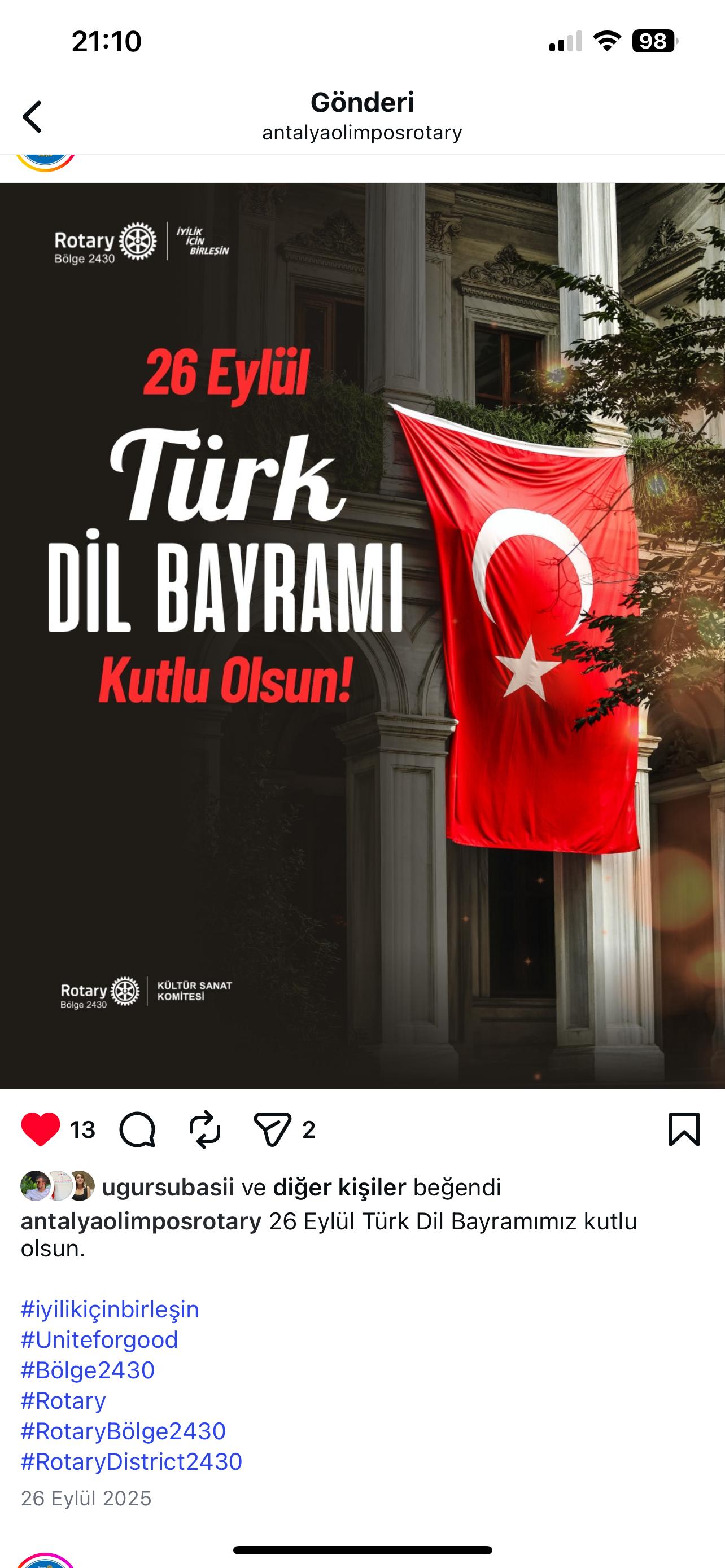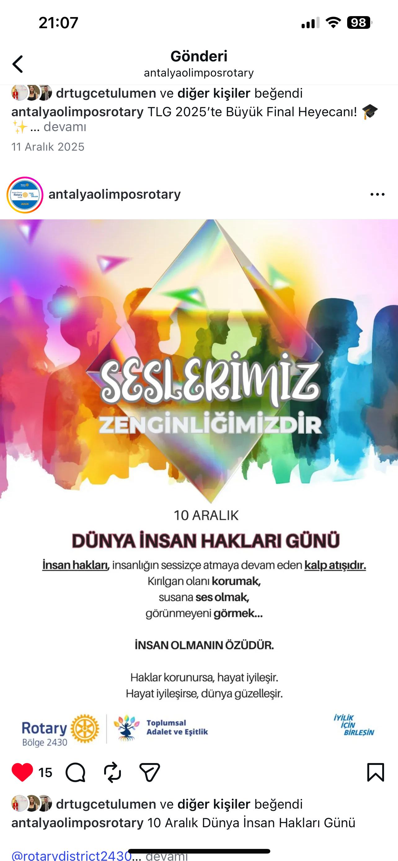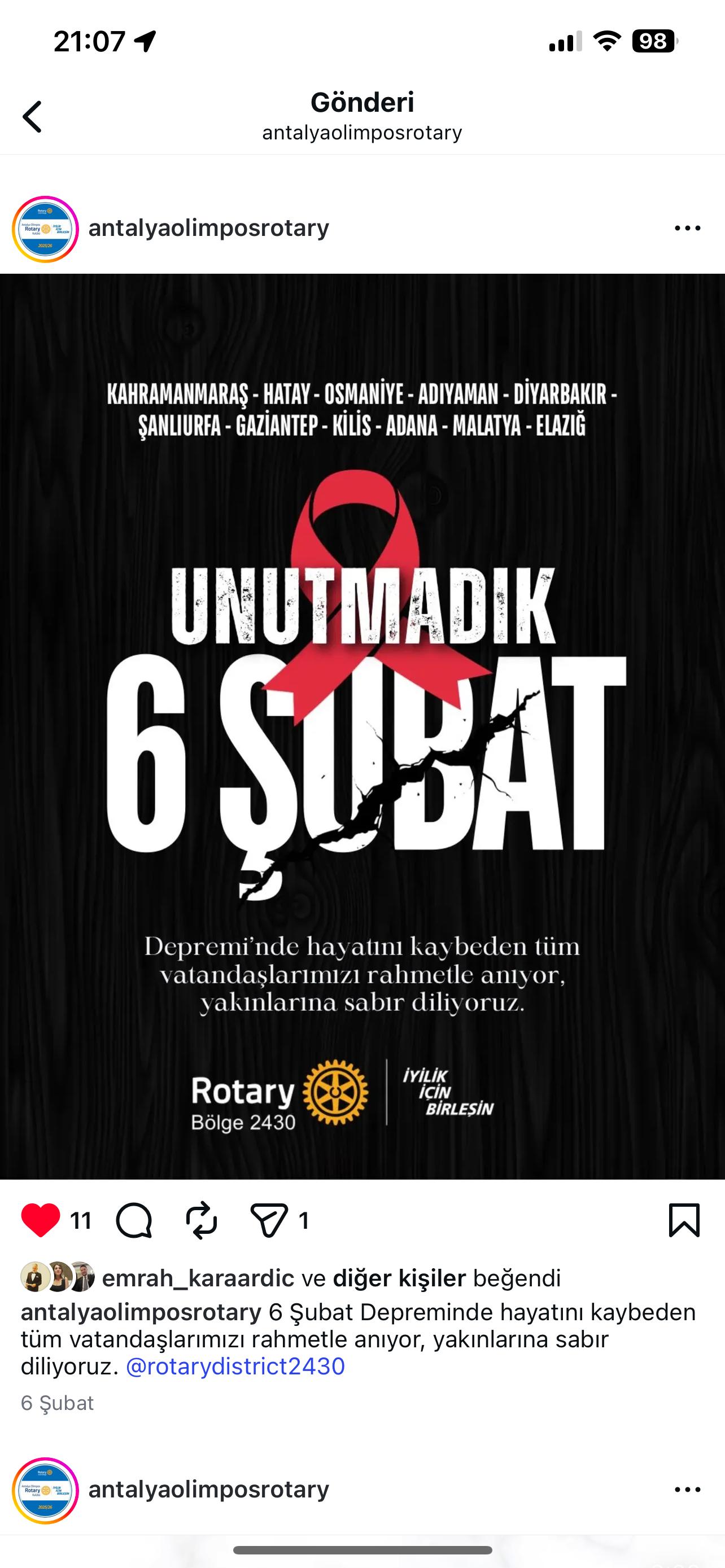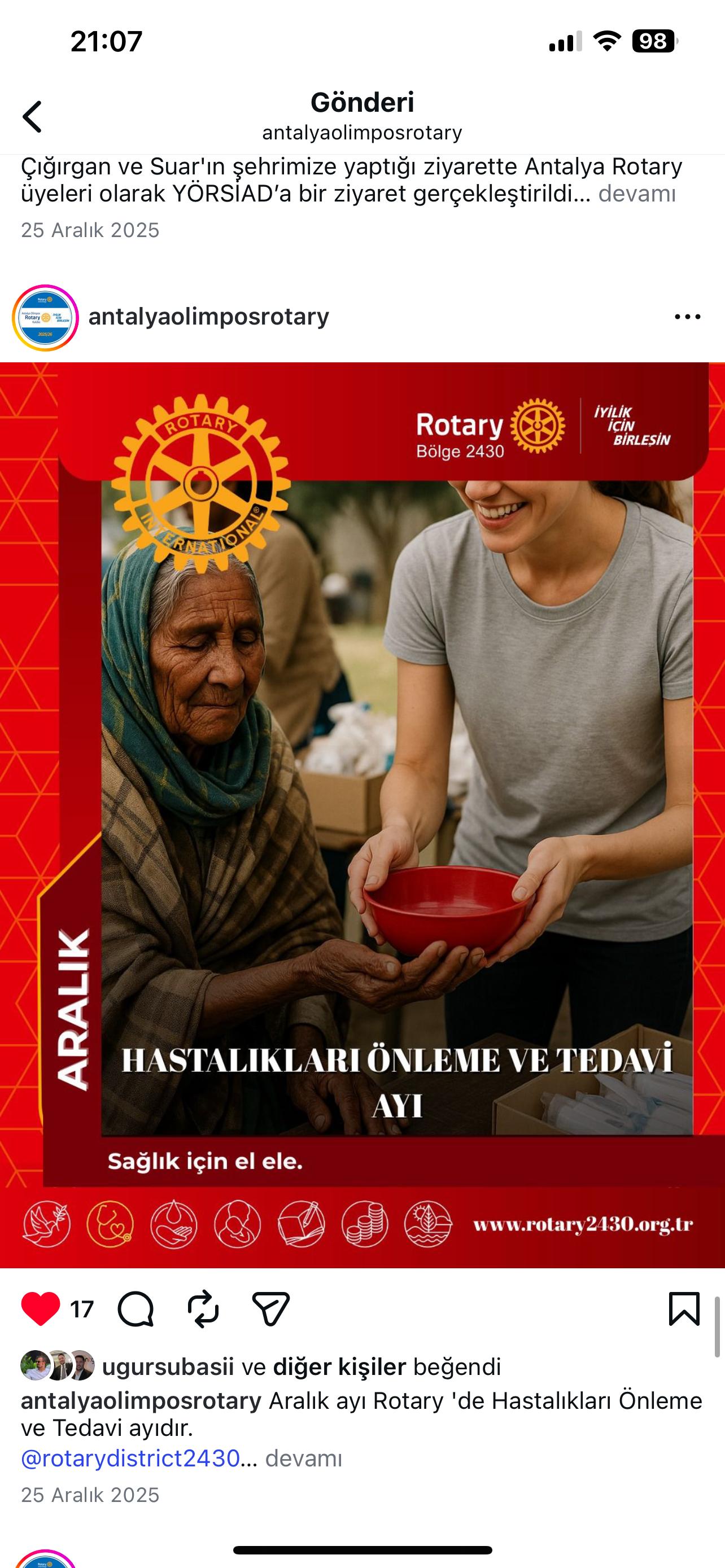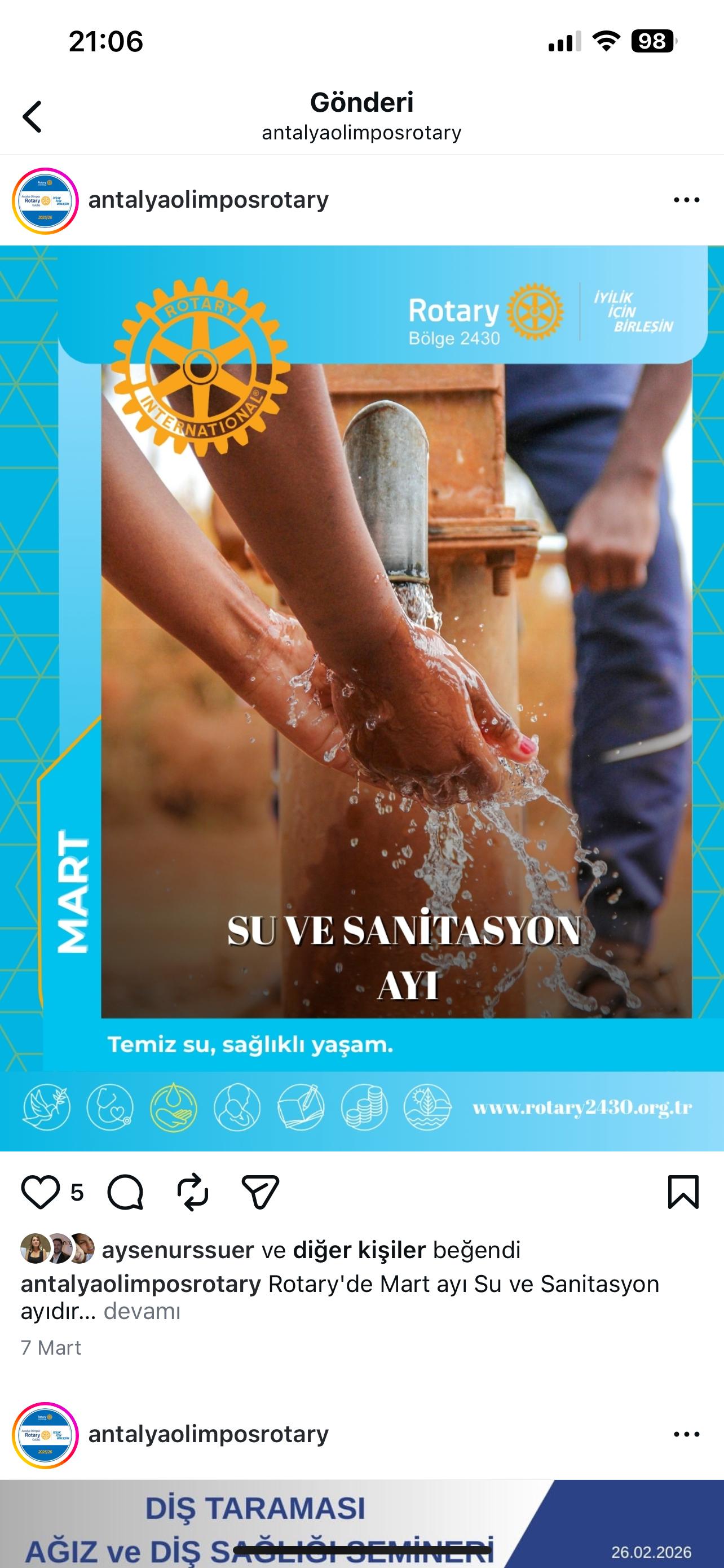 Antalya Olimpos Rotary Kulübü olarak kulüp hesabımız üzerinden Bölge Sosyal Medya Postları Repost edilmektedir. RSR Tuba Subaşı Antalya Olimpos Rotary Kulübü DB
