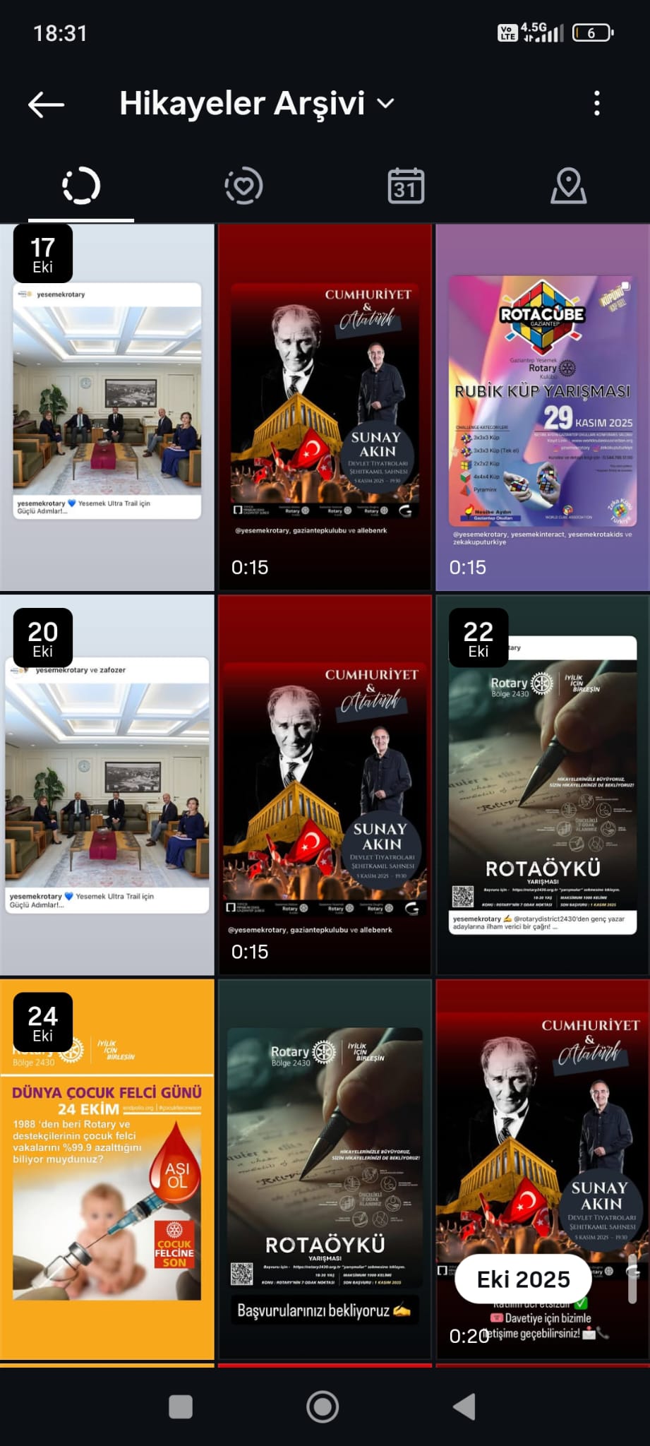Mart ayına kadar kulüp hesabımızdan gerek post gerek story olarak paylaşılan bütün görseller sisteme yüklenmiştir.