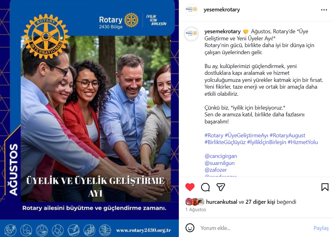 - Proje Adı: Bölge Sosyal medya postlarının kulüp hesabından yayınlanması (R)