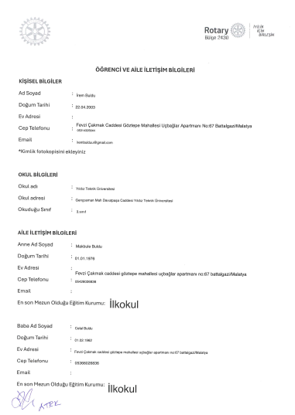 - Proje Sahibi: Ankara Tandoğan Rotary Kulübü